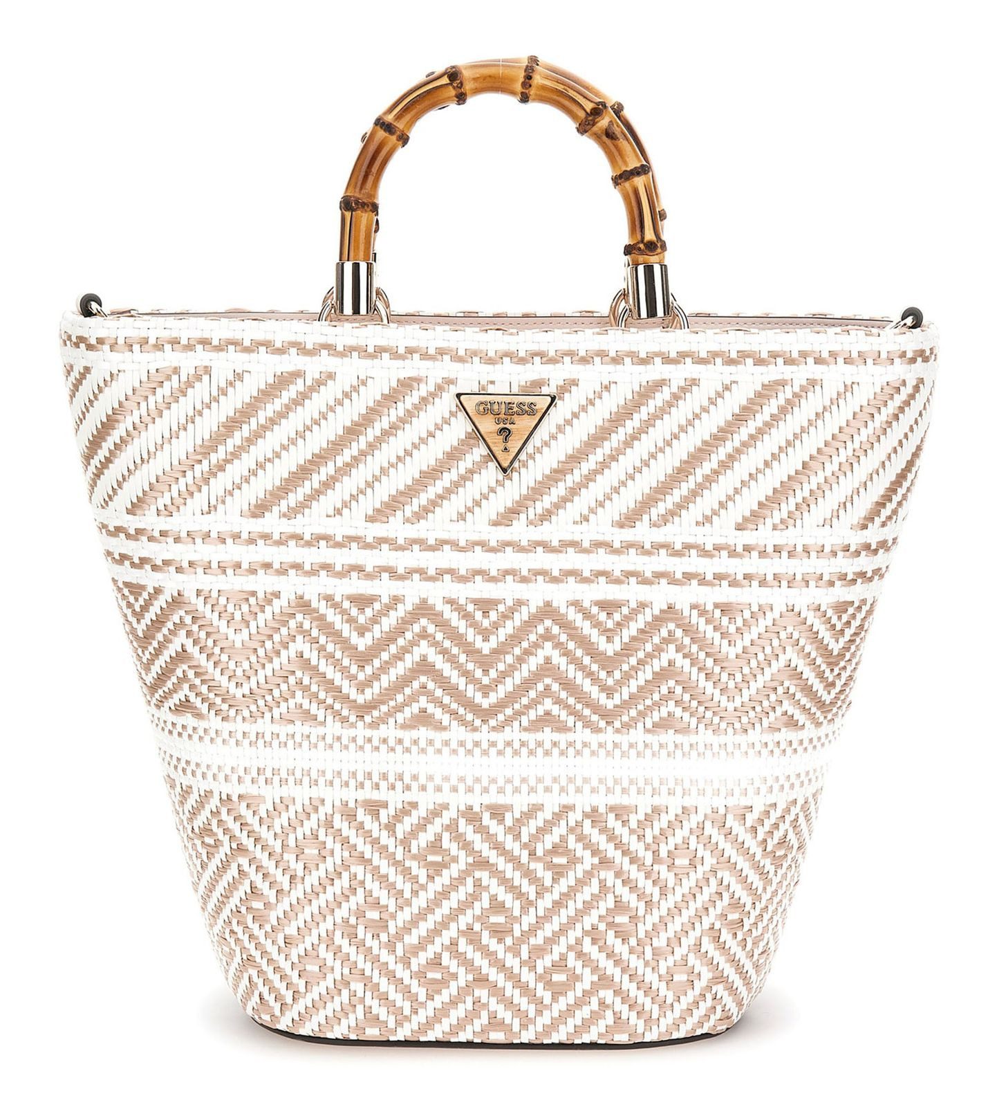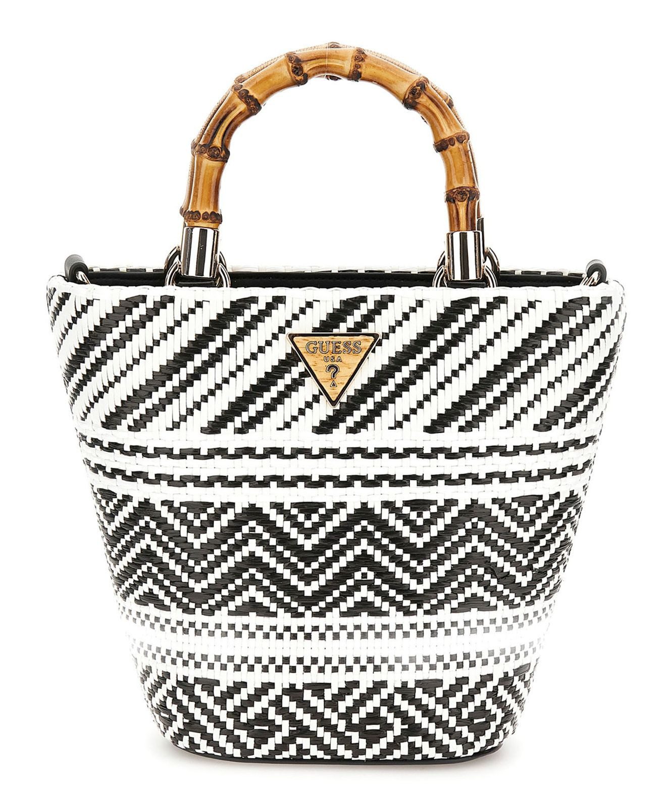 GUESS Handtasche im gewebten Look mit Henkeln aus Bambus