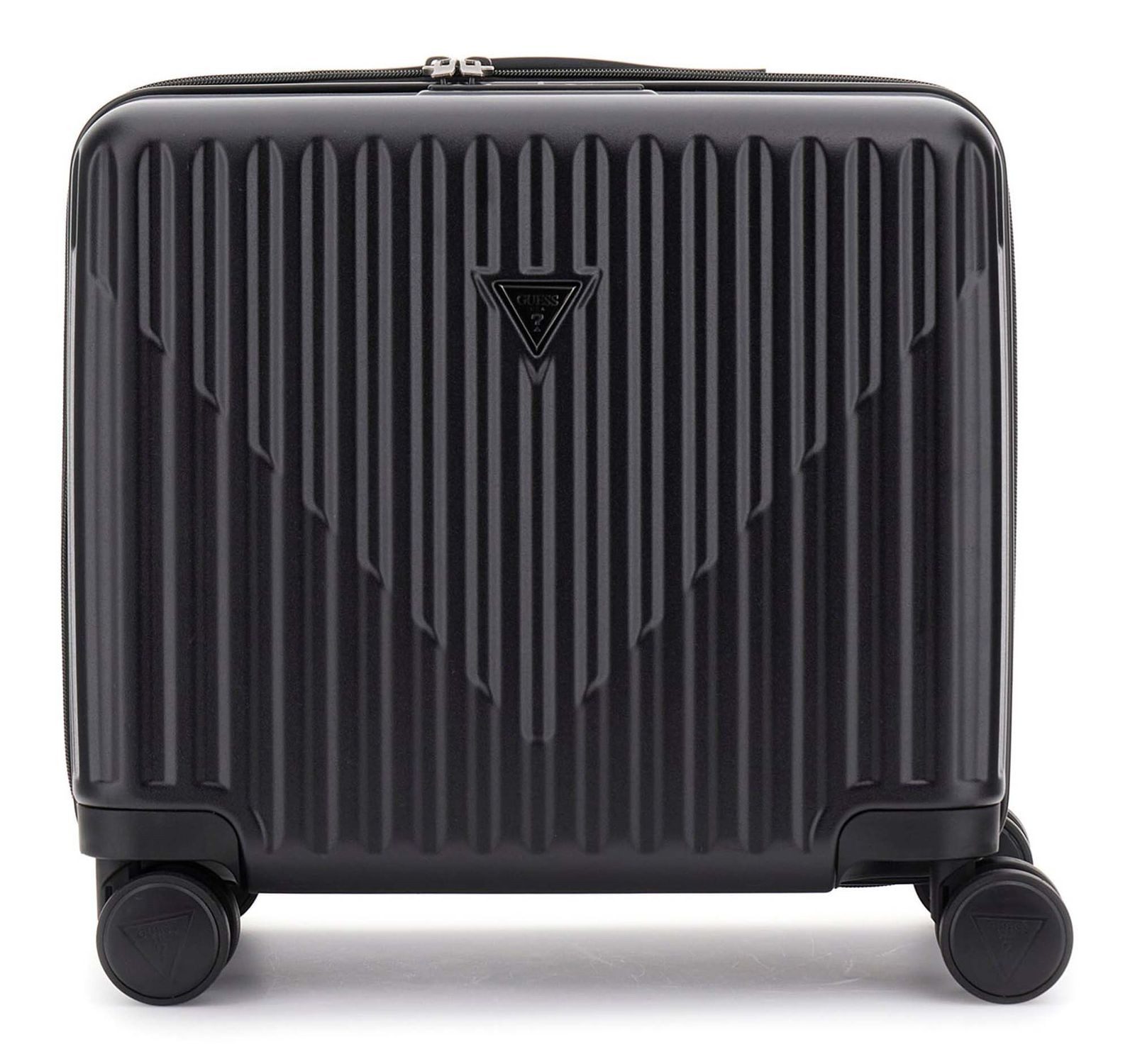 In diesem GUESS Trolley bekommen Sie Ihre Reiseutensilien unter. Geordnet mit vielen verschiedenen Fächern und einer abnehmbaren Trennwand ist dieser GUESS Olbia Pilot Trolley ein echter Helfer beim Reisen. Stabil und dennoch sehr leicht, lässt er sich super handhaben. Mit den vier leisen Doppelrollen sind Sie mit dem Trolley schnell unterwegs und können ihn entspannt hinter sich herziehen. Mit GUESS können Sie jetzt also auch bestens auf Reisen gehen!