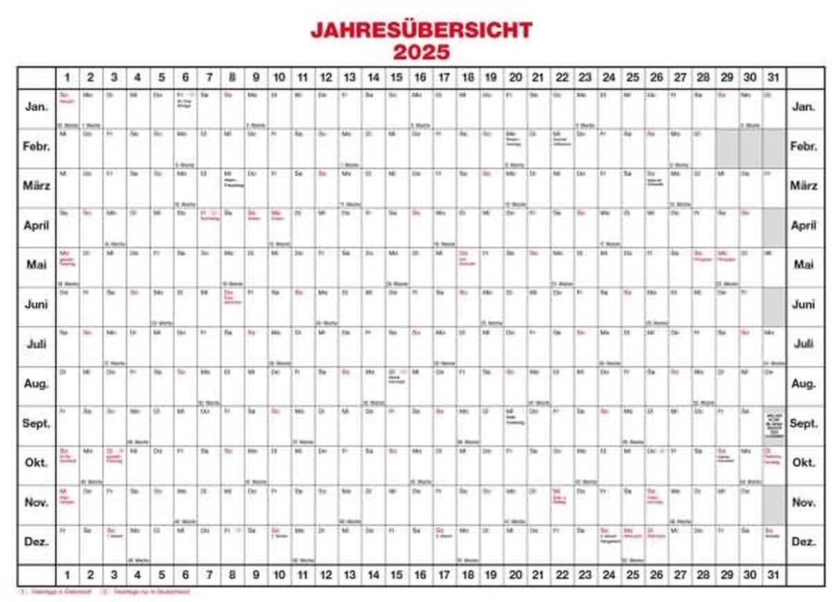 • Sonn- und Feiertage rot hervorgehoben