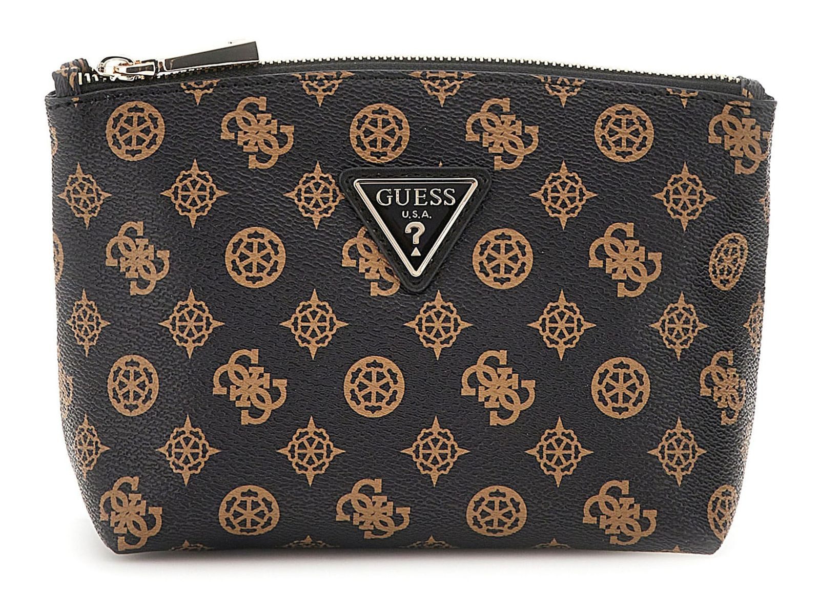 Hier hat sich die Trendmarke GUESS wieder was Besonderes einfallen lassen. Mit dieser Kosmetiktasche haben Sie einen Stauraum gefunden, der alle Pflegeutensilien sicher für Sie aufbewahrt. Mit dem Zipper lässt sich die GUESS Wilder Large Top Zip leicht öffnen und so haben Sie alles schnell zur Hand. Zudem überzeugt die Kosmetiktasche mit edlem Design. Dieses bringt im Koffer oder im Badezimmerschrank Ihr Modebewusstsein zum Vorschein. Probieren Sie es selbst!