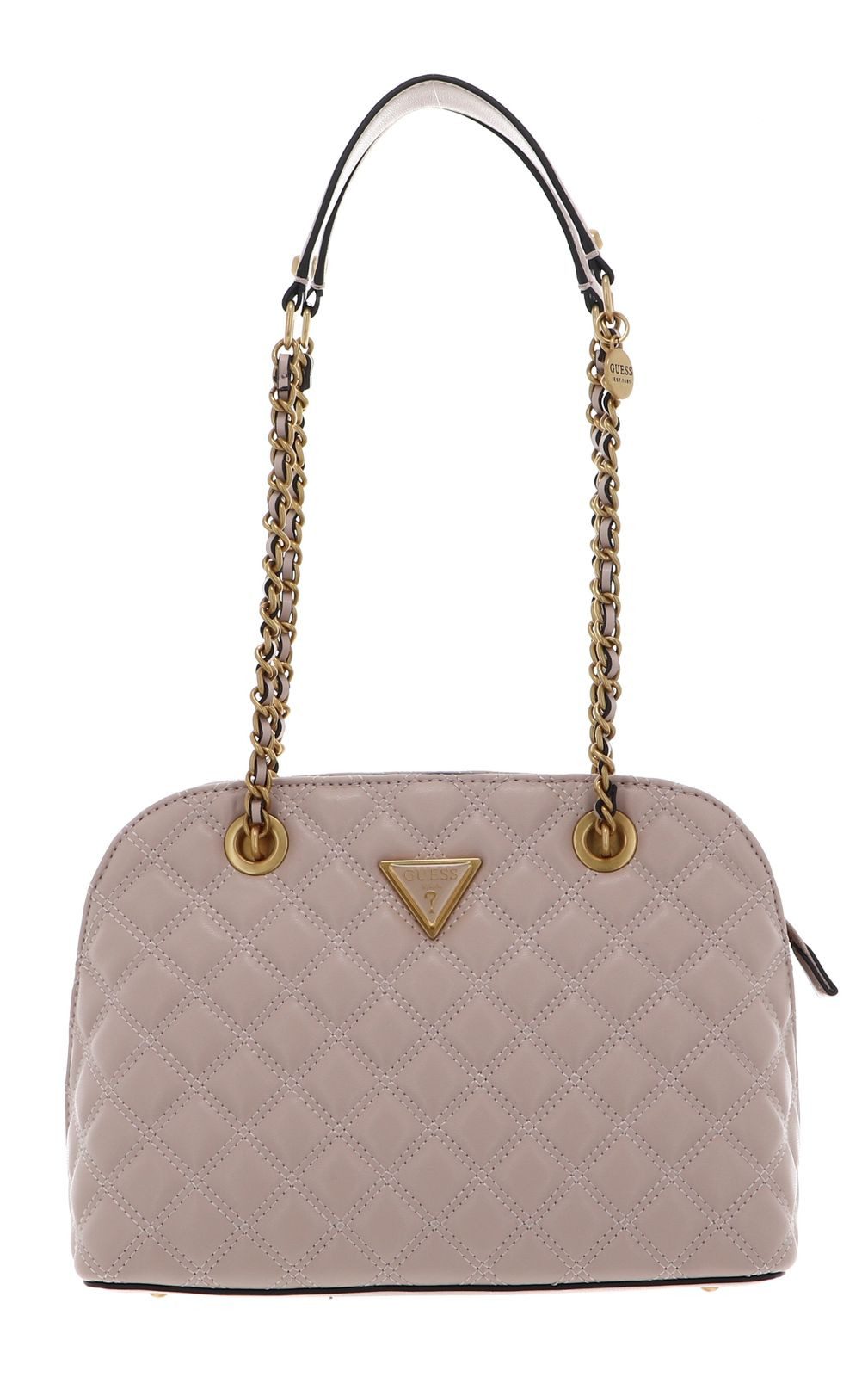 Diese GUESS Giully Dome Satchel Schultertasche ist ein echtes Highlight. Das schicke Design ist zu jedem Look das perfekte Accessoire und wird viele neidische Blicke auf sich ziehen. Getoppt wird das Ganze mit edlen Akzenten in goldfarben. Im Inneren haben Sie genug Stauraum für all Ihre Wertgegenstände und behalten dank der weiten Öffnung den perfekten Überblick. Sie können diese GUESS Tasche bequem an den Henkeln tragen. Genießen Sie so einen angenehmen Tragekomfort über den Tag hinweg.