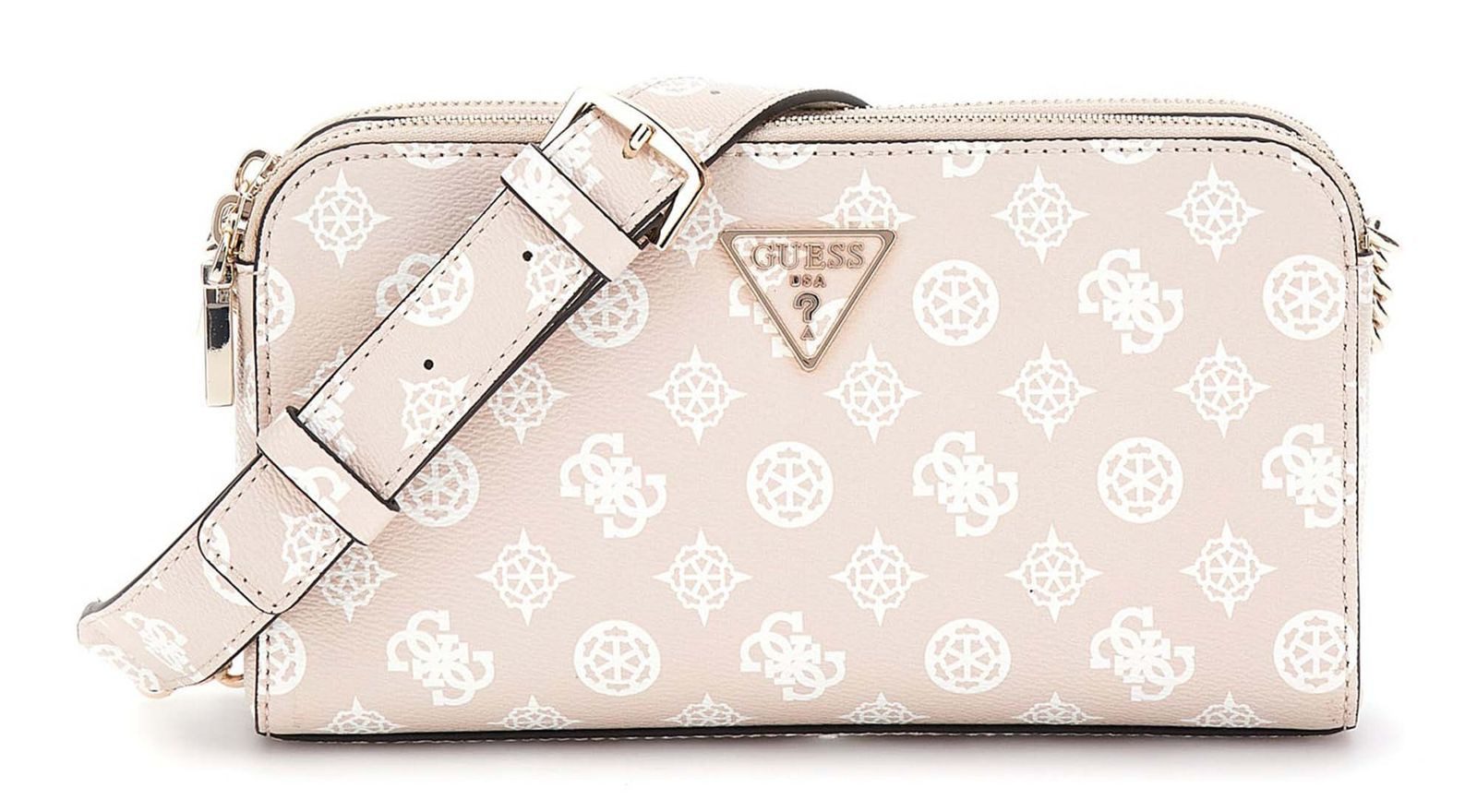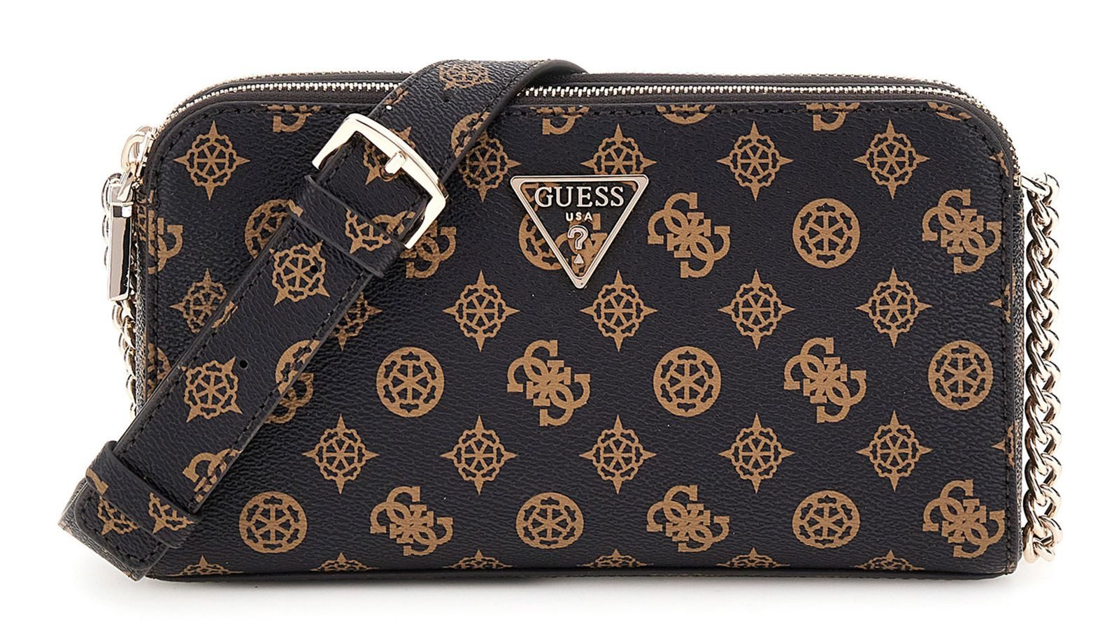 Mit der GUESS Umhängetasche haben Sie einen echten Volltreffer erzielt. Hier sind Sie wirklich bestens ausgestattet. Dank der geschickten Розмір und der gekonnten Aufteilung der Fächer kommen alle wichtigen Gegenstände unter und können sortiert werden. Egal ob Kreditkarte, Geldbörse oder Handy, hier findet alles seinen Platz. Zudem ist diese Tasche ein echter Hingucker, dank des schönen Logo Musters und den stilvollen Details. Ein weiteres Highlight ist der verstellbare Riemen mit Kettenelementen. Dieser sorgt dafür, dass die GUESS Eco Erica Status Crossbody Umhängetasche bequem auf der Schulter aufsitzt und mächtig was hermacht.