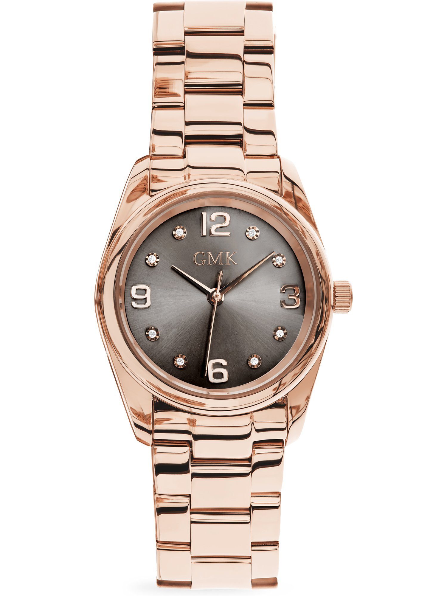 Diese elegante Damenuhr aus der Kollektionslinie von Kultdesigner Guido Maria Kretschmer lässt das Handgelenk funkeln: Mehrere weiße Zirkoniasteine markieren die Uhrzeit und sorgen damit für den gewissen Glamour-Effekt. In den Farben Gold, Silber und Rosé lässt sich dieser Hingucker wunderbar zu verschiedenen Outfits kombinieren und setzt sowohl bei lässigen als auch bei schickeren Looks aufregende Akzente.