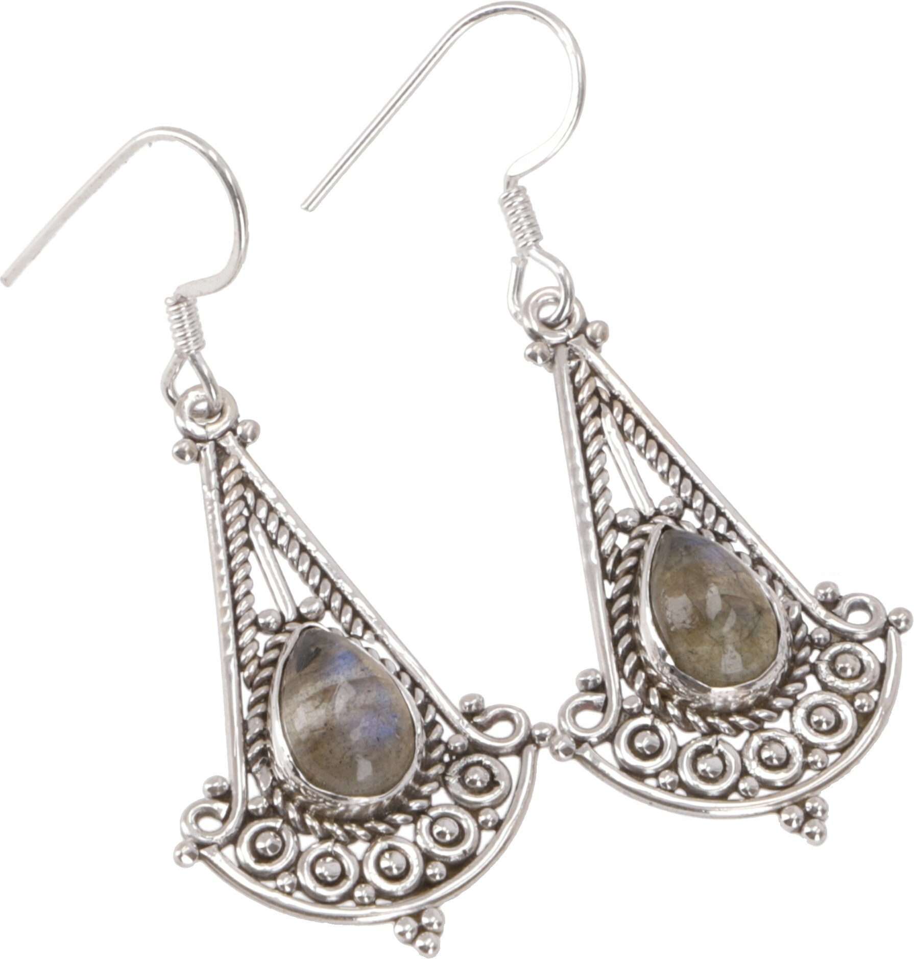 Indische Silberohrringe, filigrane Ethno Ohrringe, Boho Ornament Ohrhänger - Labradorit Modell1, Ø 4 cm
