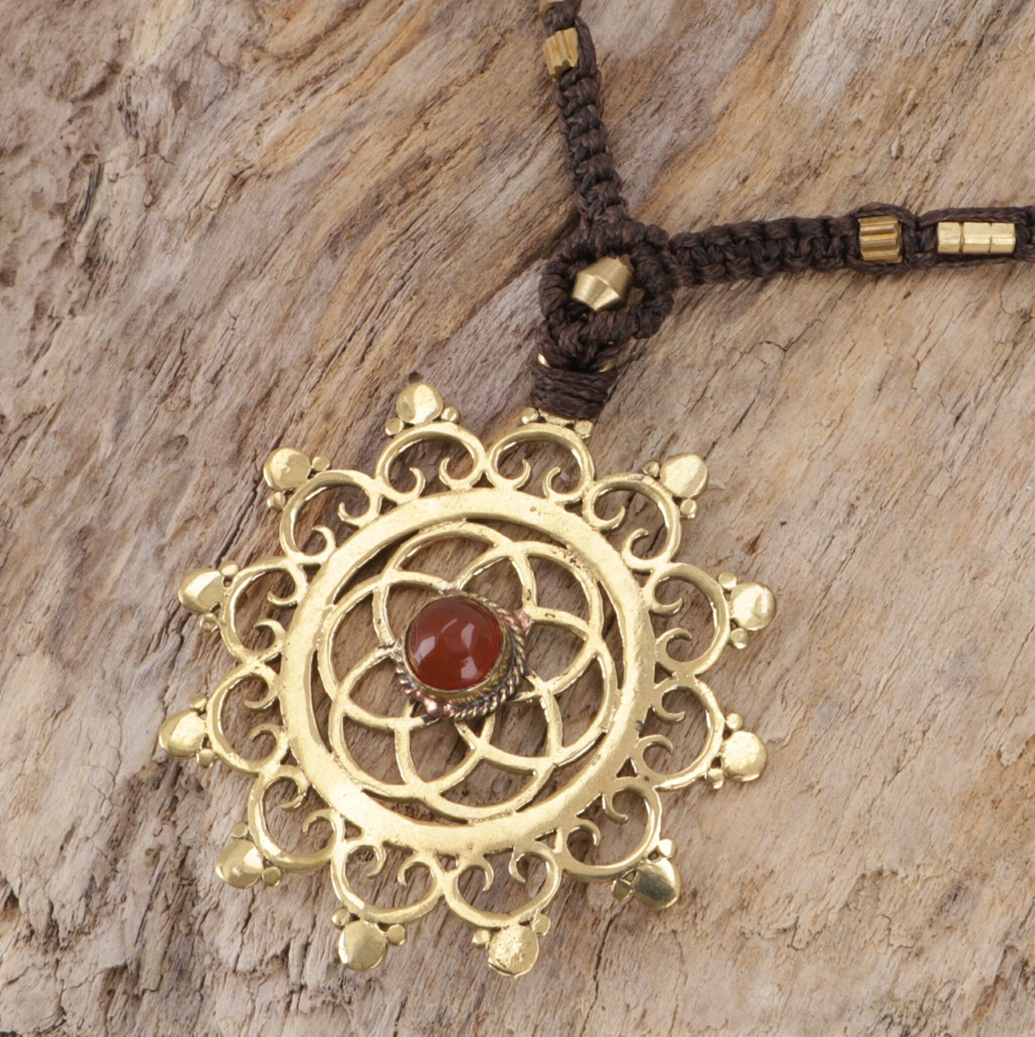Boho Makramee Kette, Elfenschmuck - Blume des Lebens /Karneol