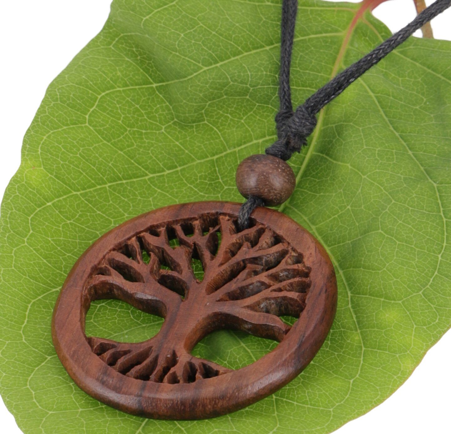 Ethno Holzschmuck, Halskette, Surferkette - Tree of life/ braun 1, Ø 4 cm