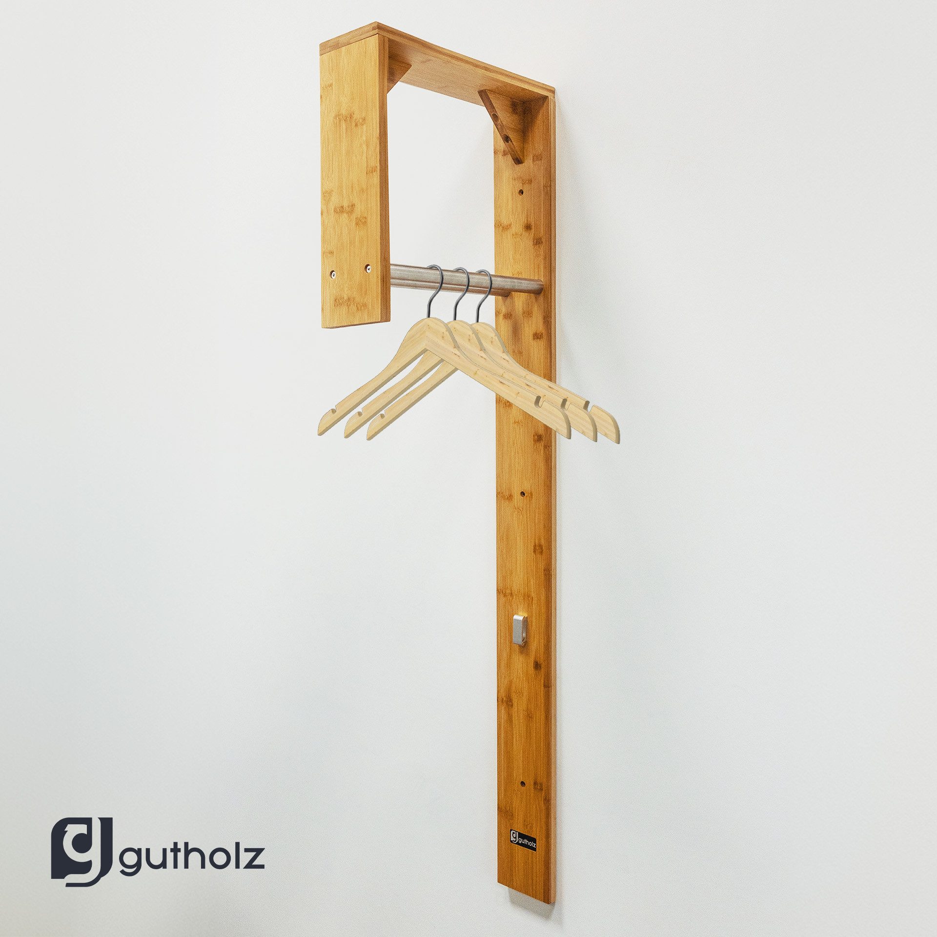 Schaffen Sie Ordnung mit Stil – unsere kompakte Wandgarderobe aus Bambus und Edelstahl ist die perfekte Lösung für kleinere Räume. Das moderne Design kombiniert natürliches Bambus-Holz mit zwei robusten Edelstahlrohren, die ideal zum Aufhängen von Bügeln für Jacken und Kleidung sind. Trotz ihrer geringen Розмір bietet die Garderobe genügend Platz für Ihre Jacken, Handtaschen und Accessoires, ohne dabei viel Raum einzunehmen. Die platzsparende Konstruktion fügt sich harmonisch in jeden Eingangsbereich, Flur oder Schlafzimmer ein.