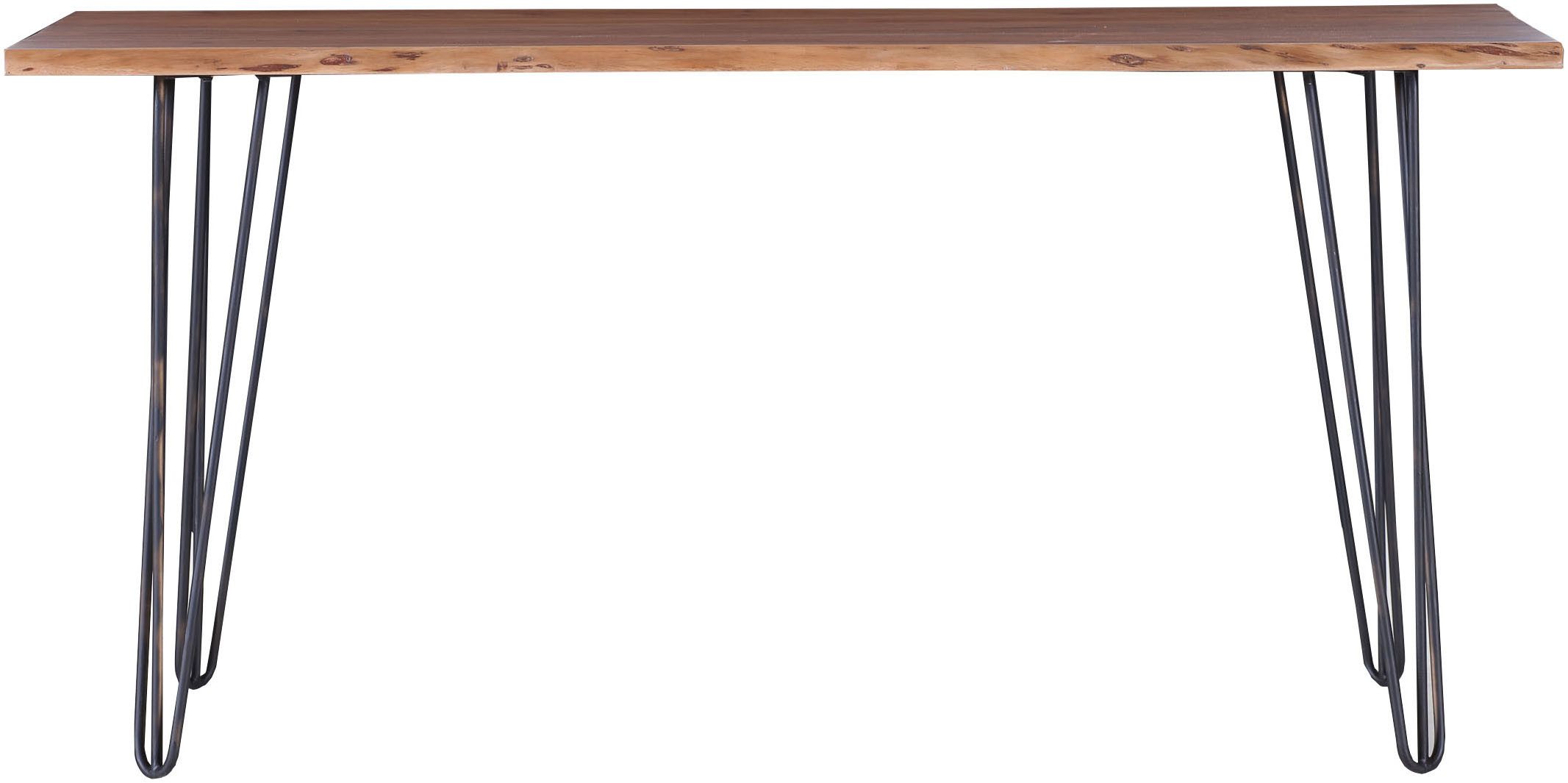 Ein Ort der Gastfreundschaft und des Beisammenseins — an diesem Esstisch von Gutmann Factory steht einer gemütlichen Zeit nichts im Weg. Durch das Hairpin-Gestell wodurch es selbst auf den kurzen Tischseiten Platz für Stühle gibt. Das Massivholz überzeugt mit seiner charmanten Optik.