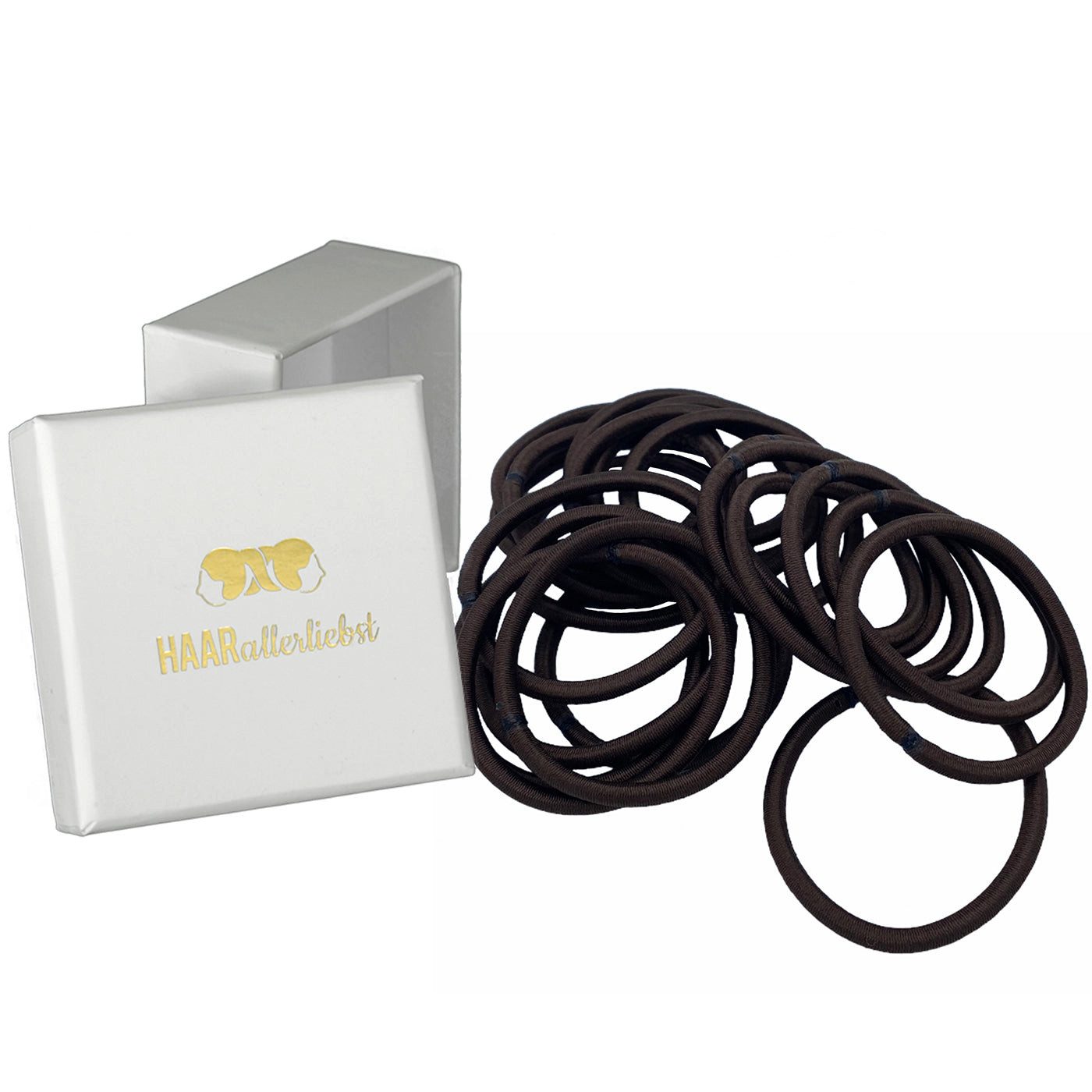 Dieses praktische Set von 20 dicken Haargummis ist ein Muss für jeden, der Wert auf diskretes und schonendes Haarstyling legt. Ob für besondere Anlässe oder den alltäglichen Einsatz – diese Haargummis bieten starken Halt, während sie im Haar auffallen und somit ideal für diverse Glamourfrisuren sind.