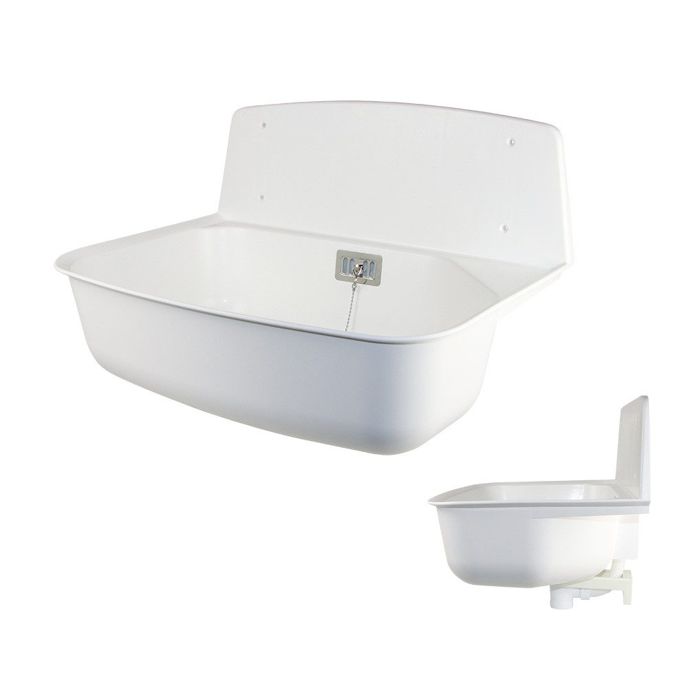Dieser universelle Waschtrog aus hochwertigem Polypropylen bietet neben dem schlicht, modernen Design eine praktische Ablagefläche.