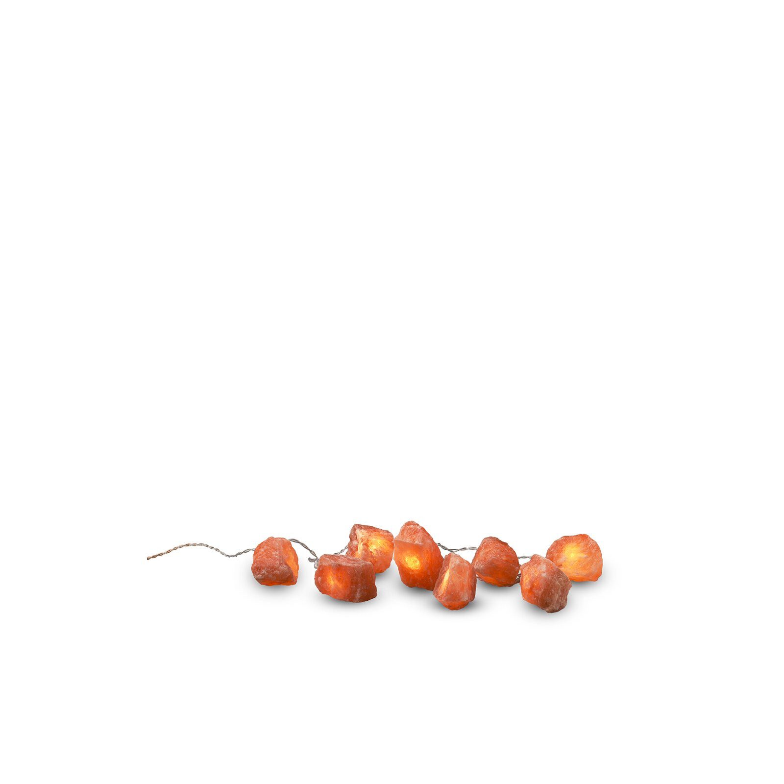 Die Lichterkette besteht aus 8 Salzkristall-Leuchtelementen, wahlweise in verschiedenen Formen (Rock, Stern, Herz oder Kugel).