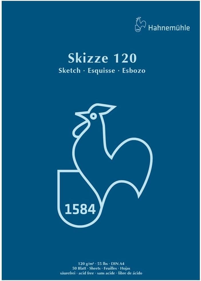 Skizzenblock 120g/m², DIN A4, 50Blatt Die Blockdecken mit ihrem klaren Design stehen für den Inhalt: Ein zurückhaltendes elegantes Skizzenpapier für den unkomplizierten Umgang bei jeder Gelegenheit. Das helle Weiß ermöglicht hohe Kontraste und sorgt für schöne Farbabstufungen. Die gleichmäßige unaufdringliche Struktur macht schnelles Zeichnen genau so leicht möglich wie exaktes Arbeiten. Für alle Trockentechniken und Bleistifte aller Härtegrade geeignet.Mit dem Flächengewicht von 120 g/m² ist das Papier angenehm flexibel. Mit 190 g/m² ist es flexibel und zugleich noch stabiler.Die Blöcke sind kopfgeleimt oder spiralisiert mit Mikroperforation erhältlich. In jedem Fall entspricht das herausgetrennte Blatt dem angegebenen DIN Format. Säurefrei und alterungsbeständig. 50 Blatt