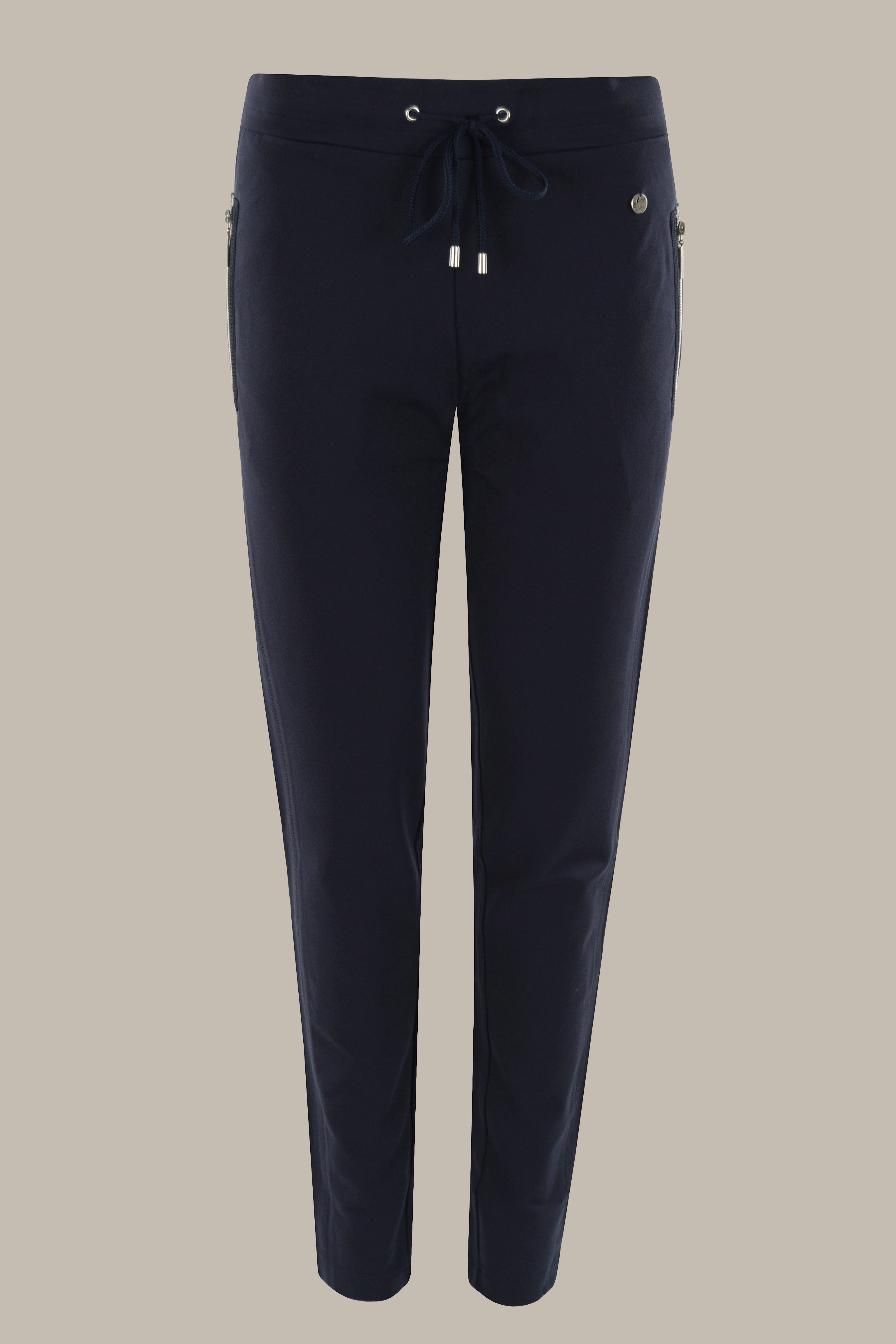 Bei der Jogg-Pants von JOY OF Life sieht man viele Details erst auf dem zweiten Blick. Die tonigen Ziernähte, Kordel und die aufgesetzten Reißverschlüsse wirken so dezent, dass sie zunächst gar nicht groß ins Auge springen. Der bequeme Bund mit Tunnelzug und die Einschubtaschen mit Reißverschluss sowie die formstabile Interlock/Stretch Qualität bieten zusätzlich den absoluten Wohlfühlfaktor.