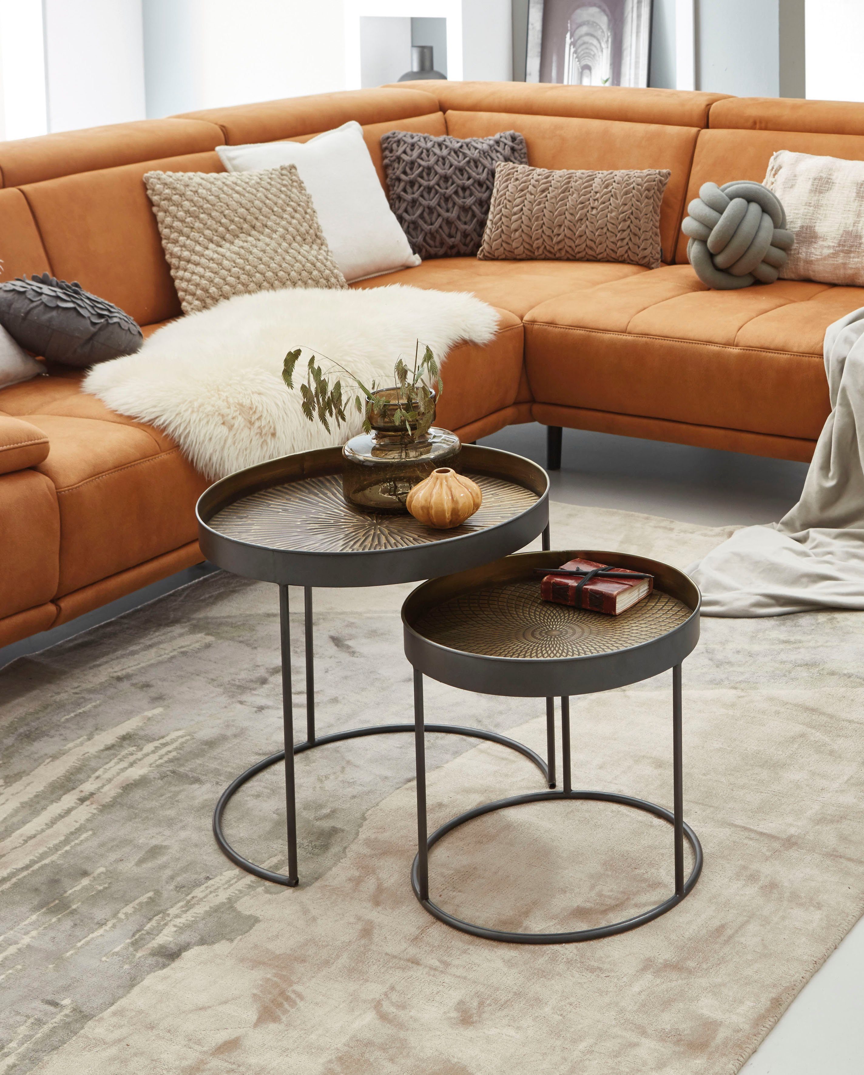 Dieser Beistelltisch von HAKU im modernen Design versprüht einen Hauch von Eleganz in deinem Zuhause. Er besitzt ein filigranes Gestell aus Stahlrohr und überzeugt durch Ablagen aus Metall in schwarz-kupfer gewischter Optik. Mit seinem zeitgemäßen Look bietet das Kleinmöbel viele Kombinationsmöglichkeiten mit unterschiedlichen Wohnkonzepten. Auf den Ablagen findest du Stellfläche für Blumenarrangements, Zeitschriften sowie stimmungsvolle Windlichter. Gut zur Geltung kommt der Tisch vor deiner Couch oder in der Leseecke. Unterstreicht das stilvolle Ambiente in deinem Raum: der Beistelltisch von HAKU im modernen Design.