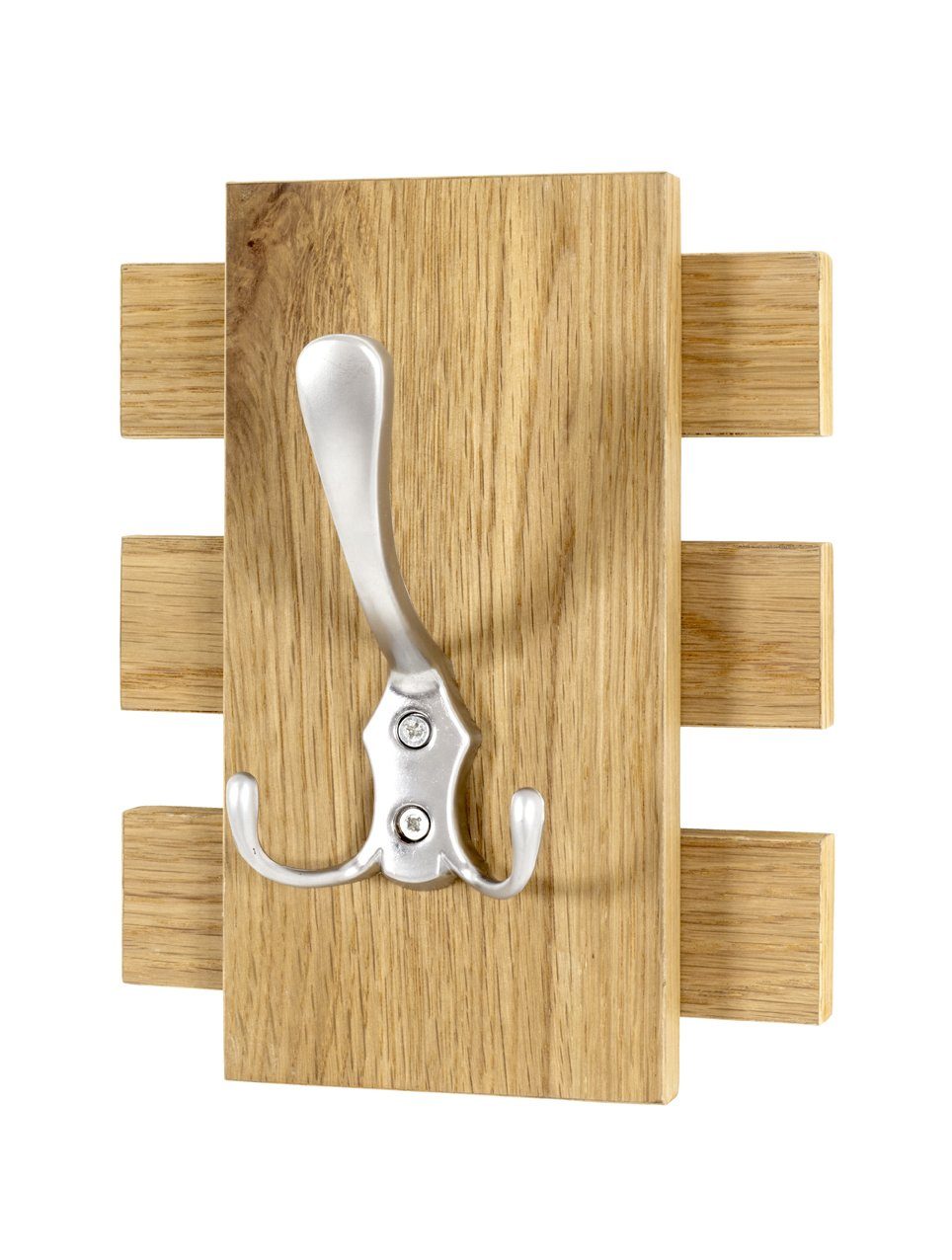 Diese Wandgarderobe erschafft durch die Eiche einfach eine wohnliche Atmosphäre. Eine perfekte Ergänzung zum beliebten Landhausstil. Die Kombination aus Edelstahl und Eiche passt sich jedem Wohnkonzept problemlos an.