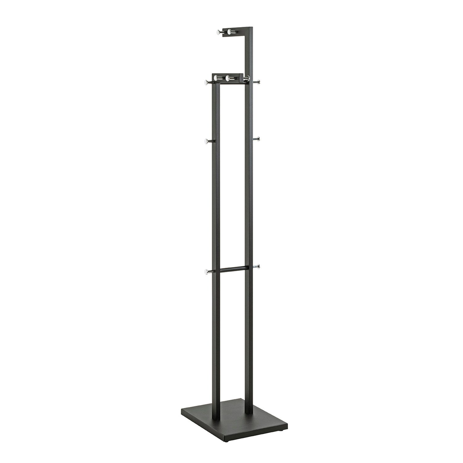 Der HAKU Möbel Garderobenständer Keno besticht durch sein elegantes Design aus pulverbeschichtetem Stahlrohr in Schwarz und 14 chromfarbenen Garderobenknöpfen.