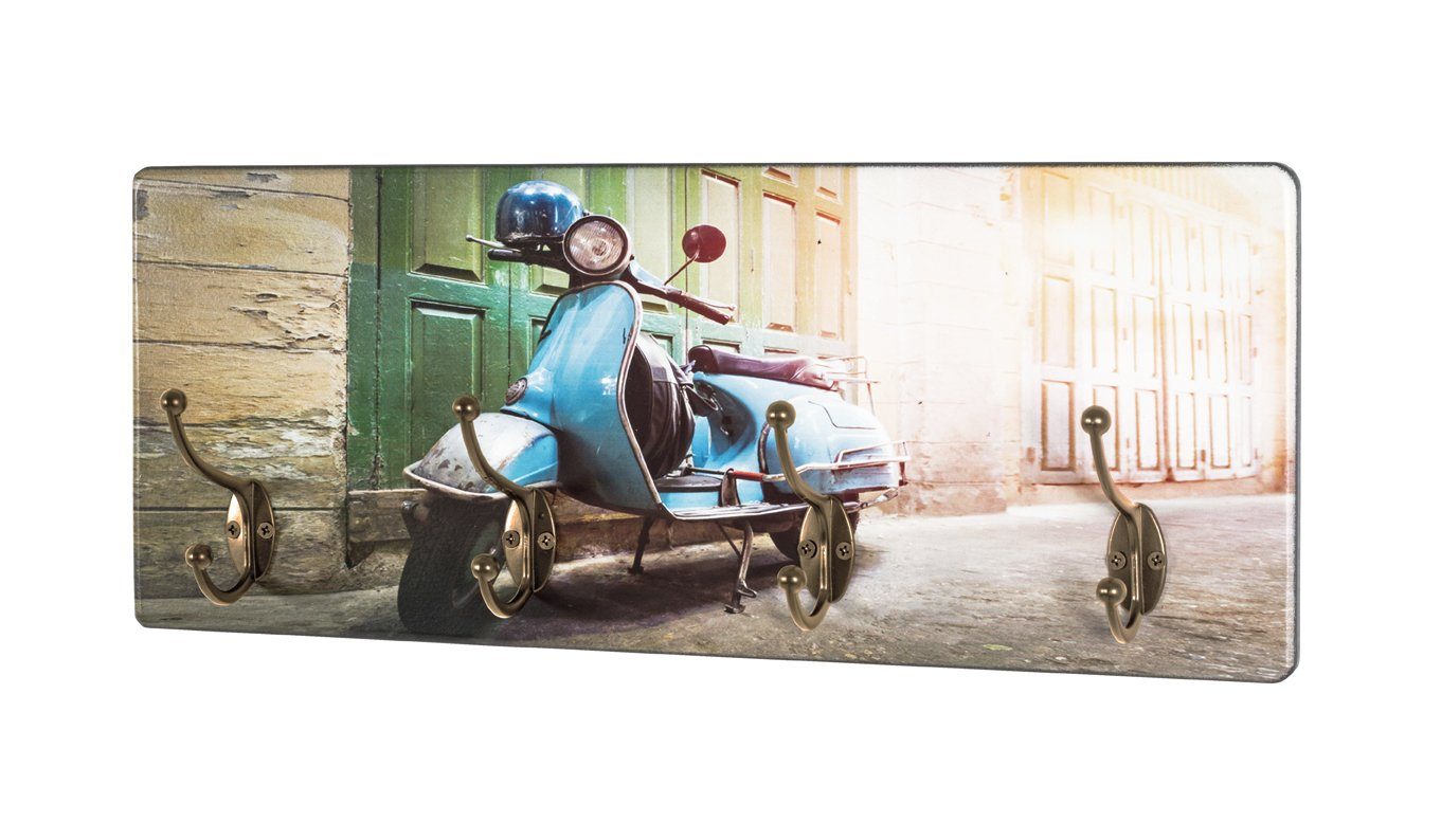 Wandgarderobe - aus MDF mit UV-Drucktechnik Motivdruck (Roller), 4 Garderobenhaken aus Metall in bronzefarben