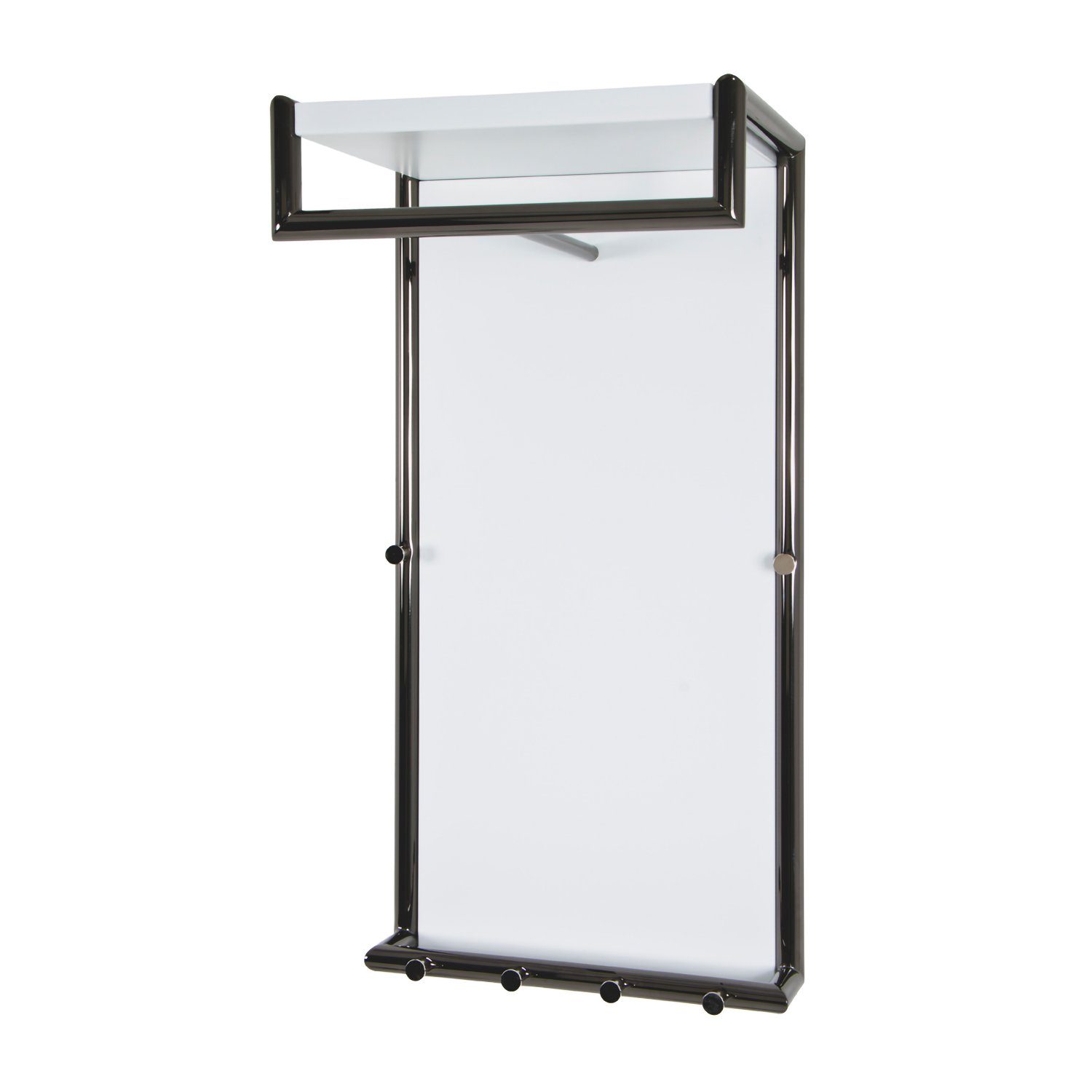 Die praktische Wandgarderobe bringt ein tolles Design in Ihre vier Wände. Für eine elegante Note sorgen die Ablage und das Paneel aus hochwertiger MDF in Weiß. Nicht nur die schlichten Haken bieten viel Platz, zusätzlich bietet diese Garderobe eine nützliche Kleiderstange und eine Hutablage. Sie lässt sich ideal mit weiteren Garderobenmöbeln wie einem Spiegel oder einem Schuhschrank kombinieren.