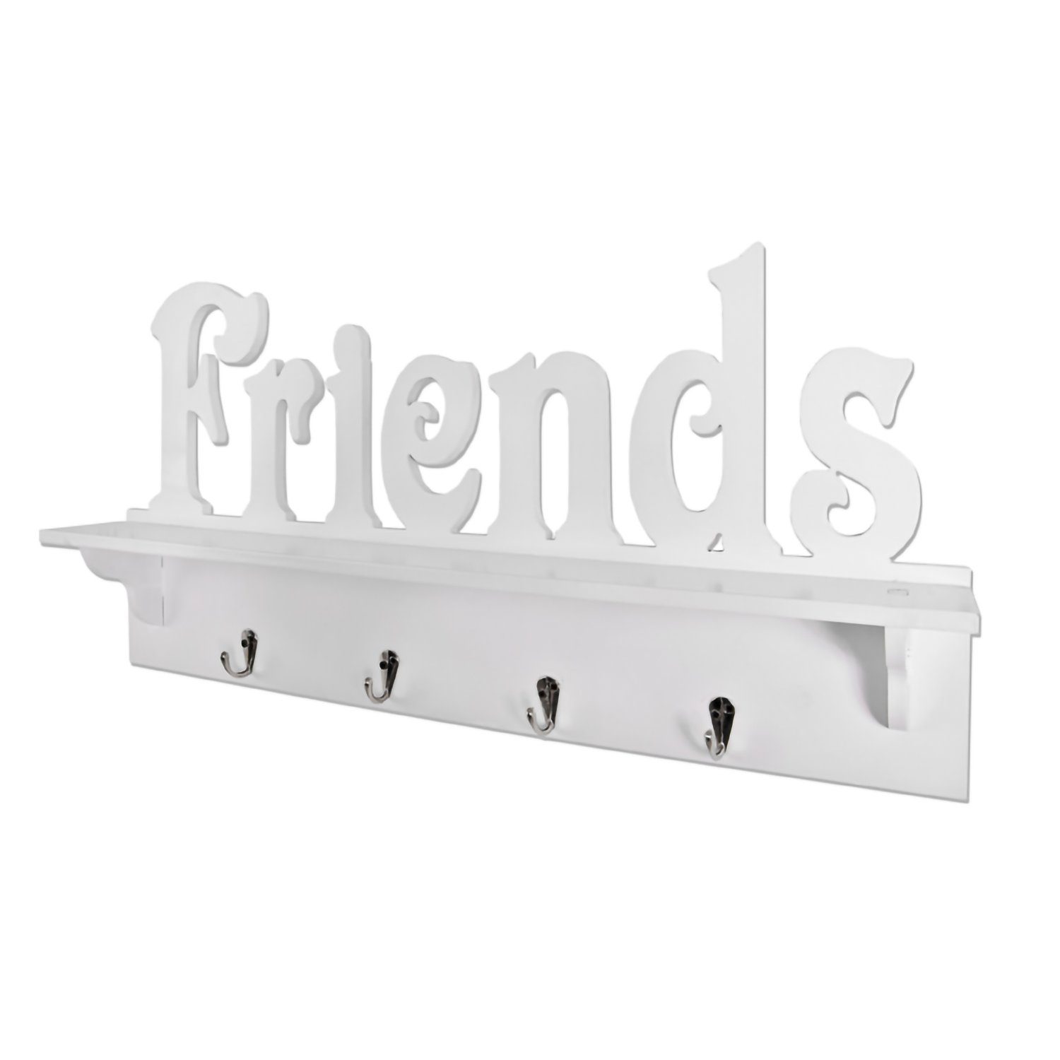 Wandgarderobe aus MDF weiß lackiert, 4 Garderobenköpfe in chrom, montiert