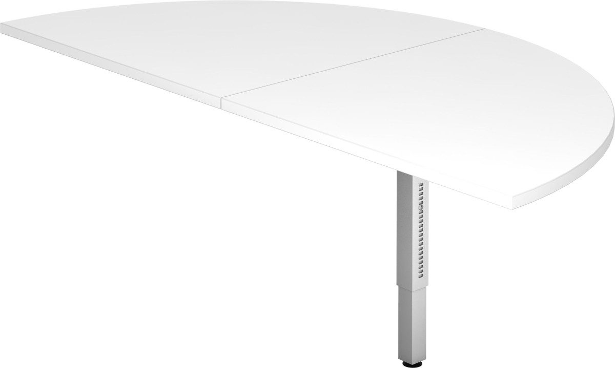 Schreibtisch Anbautisch 160x80cm 2xViertelkreis/Fuß eckig Weiß/Silber
