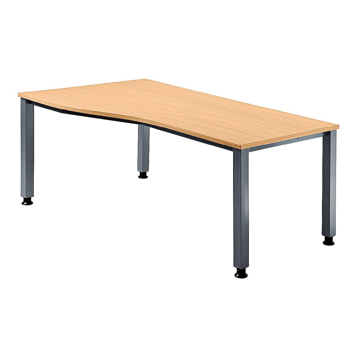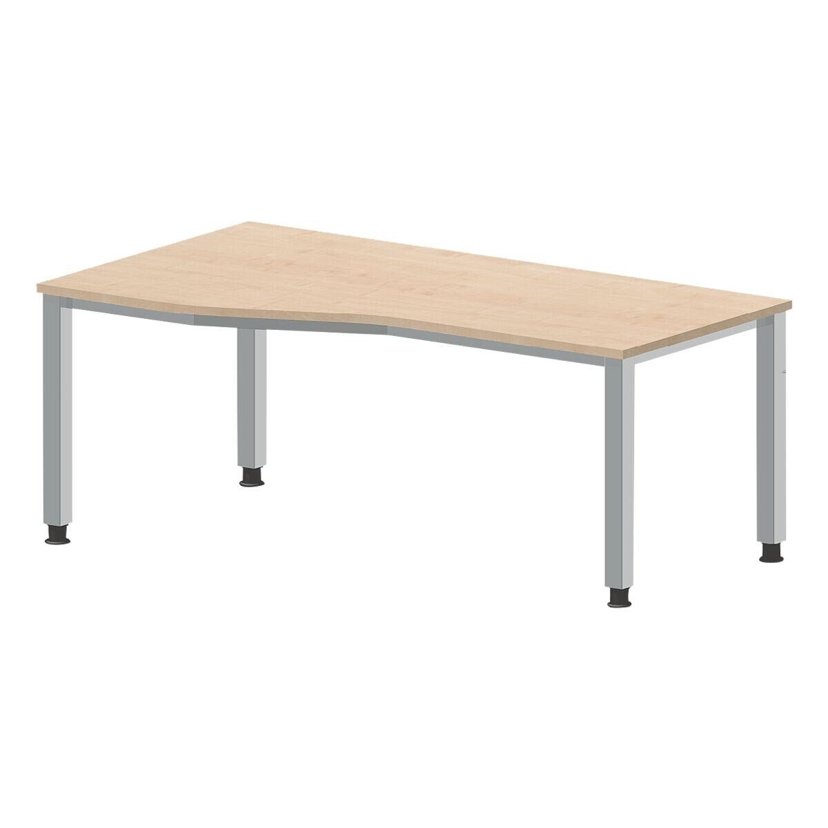 Freiform-Schreibtisch »Q-Line« 180 cm, Ausführung: links / rechts montierbar, 4-Fuß Gestell, melaminharzbeschichtet, Plattenstärke: 25 mm, ABS-Kanten, höhenverstellbar von 68 bis 76 cm, Kabelwanne optional erhältlich