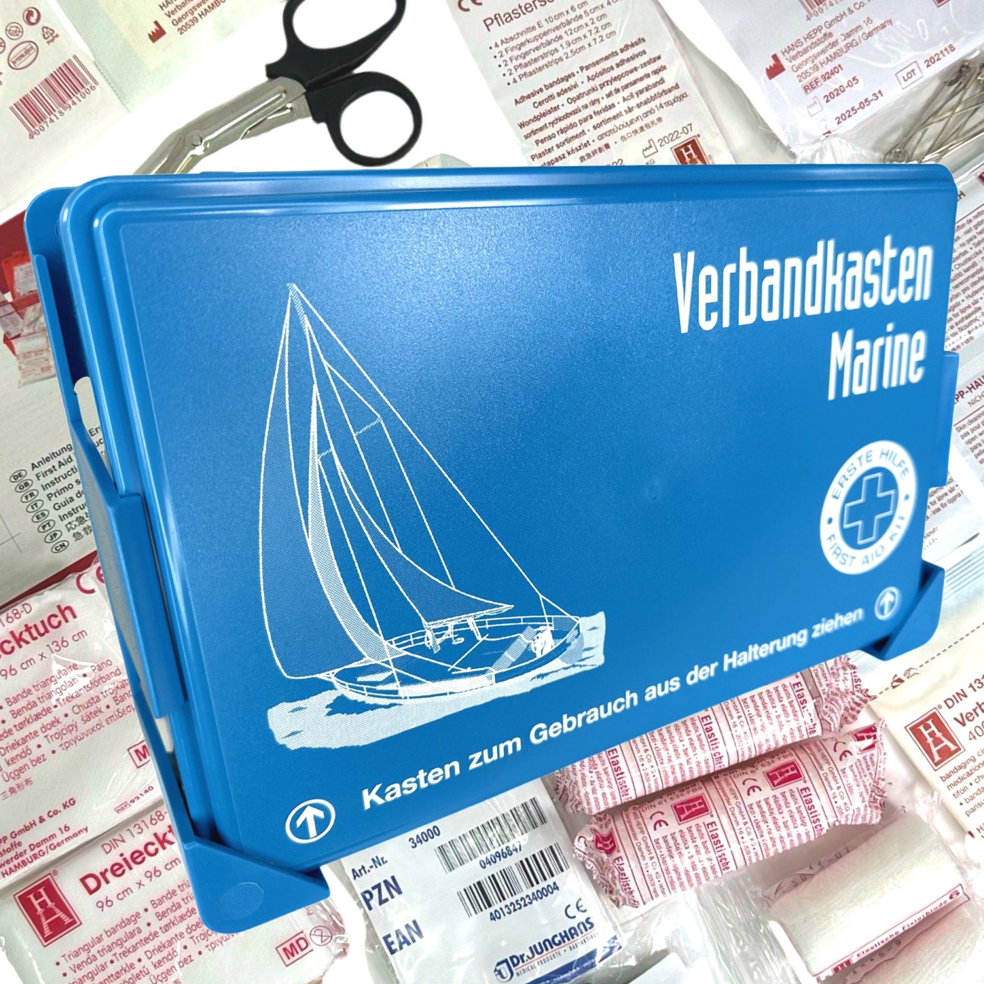 Die Mitführung eines Verbandkasten sollte nicht nur im Auto und im Betrieb, sondern auch auf jeder Motor- oder Segelyacht eine notwendige Selbstverständlichkeit sein. Schließlich kann es auch auf See überall und immer passieren, dass Sie zu Ihrem persönlichen Schutz oder auch zur ERSTEN-HILFE-Leistung für Dritte ERSTE-HILFE-Material benötigen. Insbesondere bei