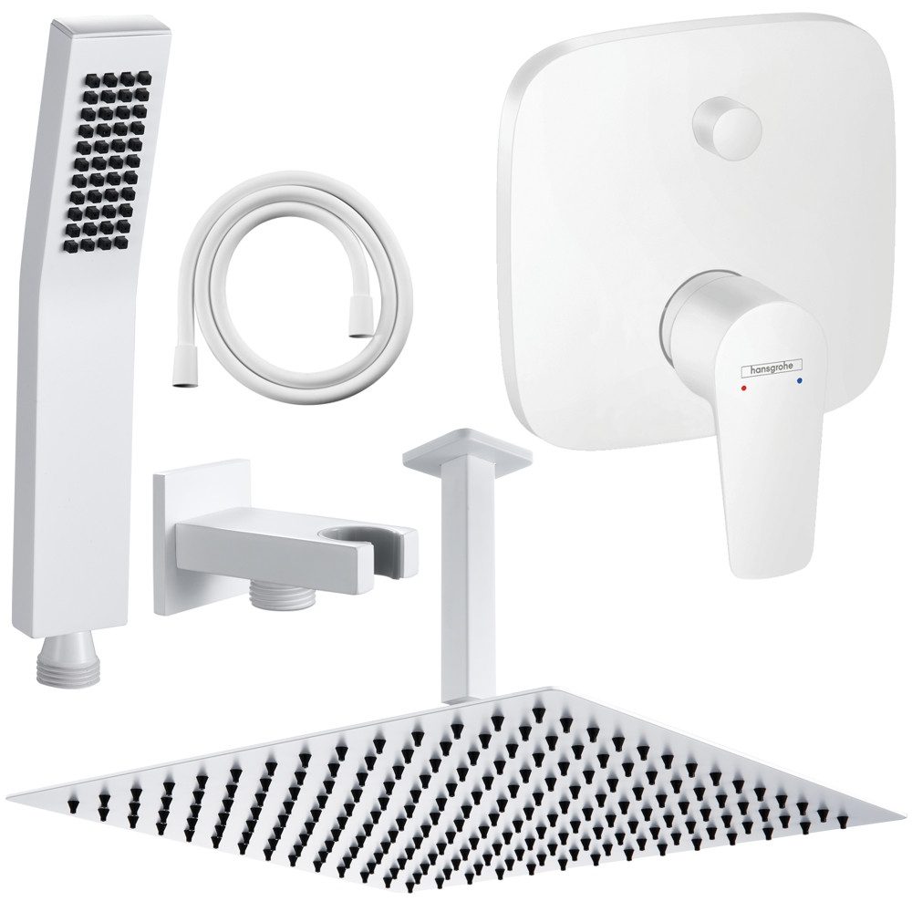 Lieferumfang | [OPTIONAL] Hansgrohe iBox 1 Grundkörper universal, 01800180 Hansgrohe Talis E Einhebel-Wannenmischer Unterputz, für 2 Verbraucher, 71745700 Jowi Handbrause, Messing Mattweiß, Farbe der Düsen: Schwarz Jowi Wandanschlussbogen mit Wandbrausehalter, Messing Mattweiß Jowi Brauseschlauch 1500mm, Mattweiß Jowi Kopfbrause, 300x300mm oder 360x360mm, Farbe der Düsen: Schwarz Jowi Deckenanschluss, Gesamtlänge: 155mm |