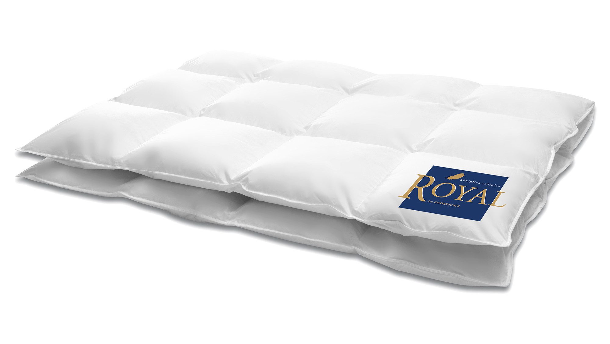 Die Luxus Daunendecke Royal ist gefüllt mit 100 % Daunen. Der weiße Bezug –