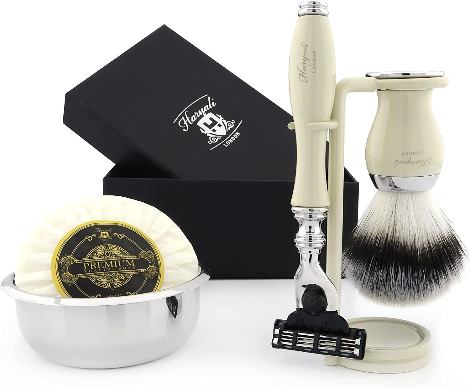 Lieferumfang | 1x Rasierpinsel 1x Rasierseife 1x Rasierhobel 1x Ständer 1x Schale |