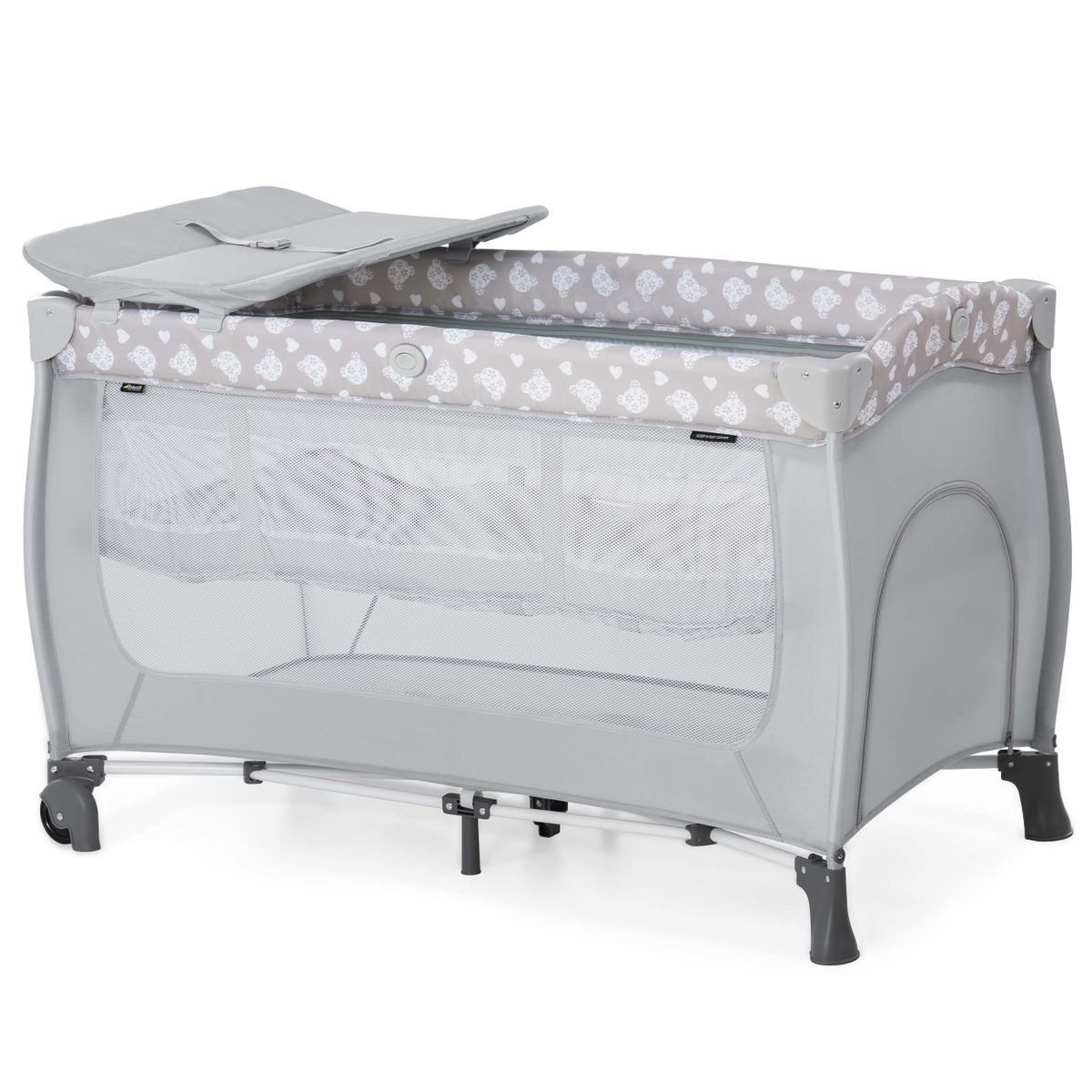 Lieferumfang | Reisebett Sleep'n Play Center in Teddy Grey Einhang für Neugeborene Wickelauflage Faltmatratze (2 cm) Transporttasche |
