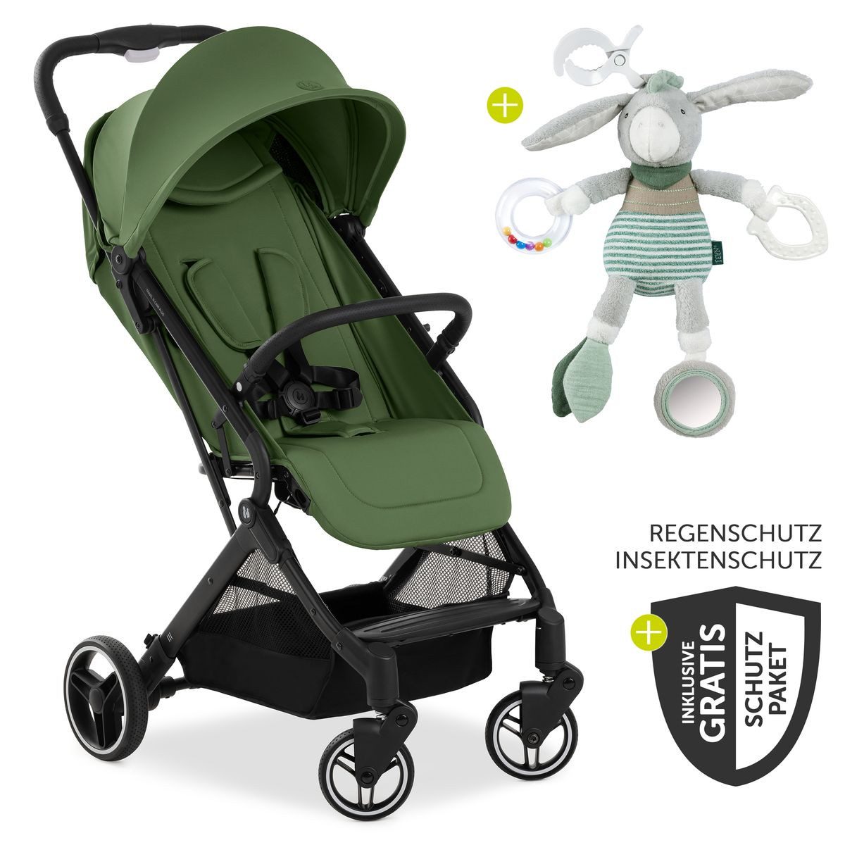 Lieferumfang | Hauck Reisebuggy Travel N Care Plus - Green Schutzbügel Sonnenverdeck Tragegurt Zamboo Universal Regenschutz Premium Zamboo Universal Insektenschutz - Grau Fehn Activity-Spieltier mit Klemme - Schaf |