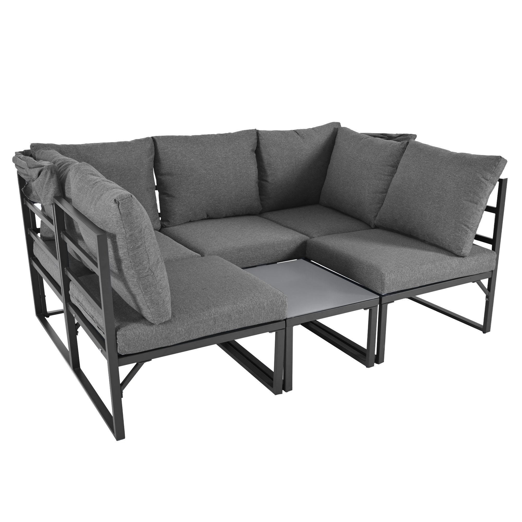 Passen Sie das Set ganz nach Ihren persönlichen Vorlieben und Bedürfnissen an. Die flexible Anordnung der Möbel ermöglicht es Ihnen, das Set so zu konfigurieren, dass es perfekt zu Ihrem Außenbereich passt. Der Couchtisch ist zusätzlich mit Kissen ausgestattet, die auch als Fußstützen genutzt werden können.