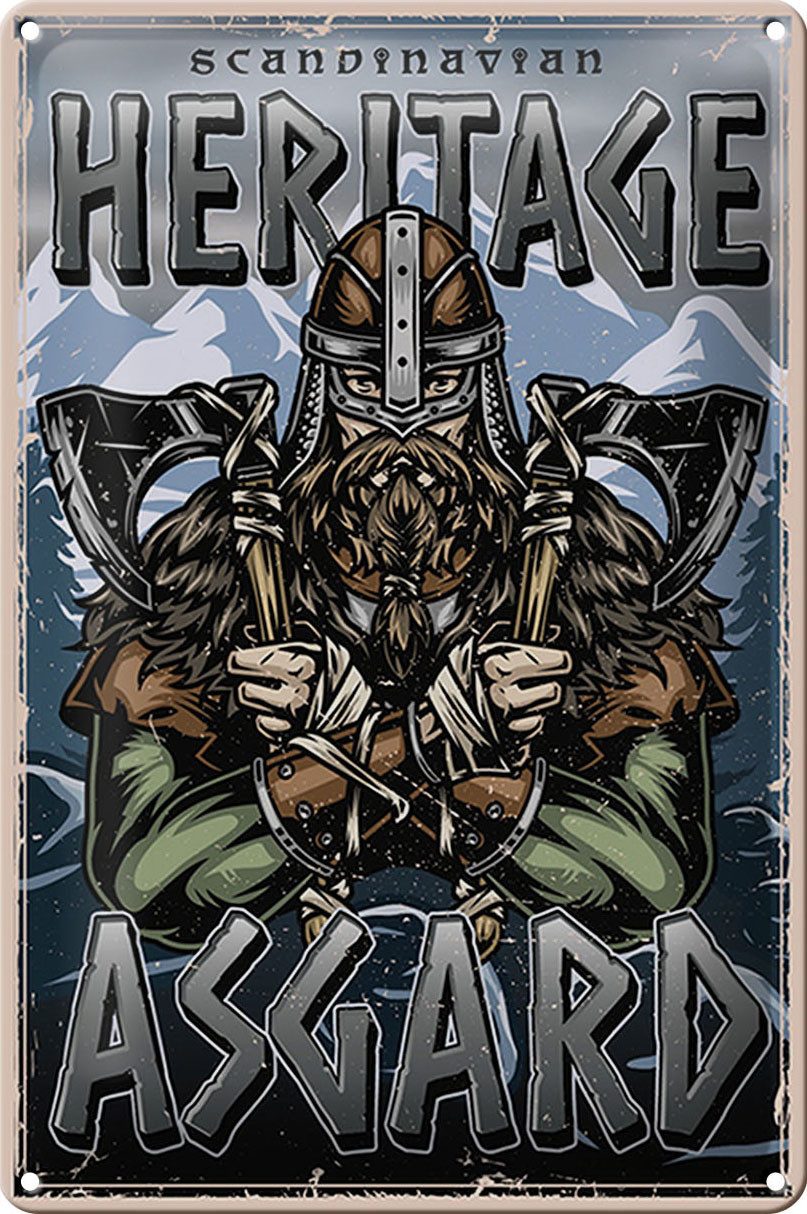 Das Blechschild "heritage Asgard Scandinavian" in der Розмір 20x30 cm bzw. 30x20 cm ist eine dekorative Metalltafel, die sich ideal für Ihr Zuhause eignet. Das gewölbte Design verleiht ihm eine ansprechende Optik und der hervorragende Druck sorgt für ein hochwertiges Erscheinungsbild. Mit abgerundeten Ecken und umgeschlagenen Kanten hat das Schild nicht nur einen ästhetischen Vorteil, sondern auch praktische vorgebohrte Löcher an allen vier Ecken zur einfachen Befestigung.