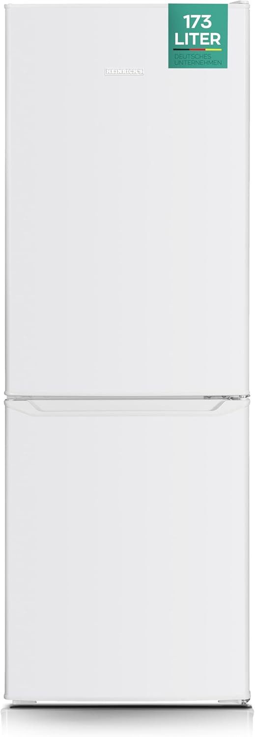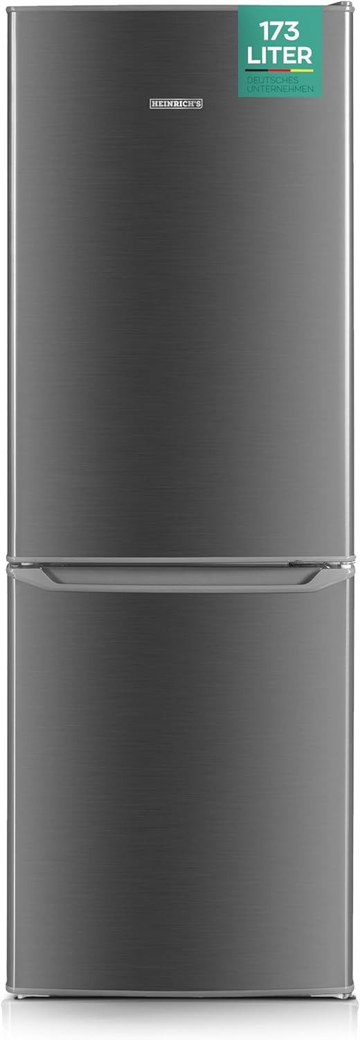 Der HEINRICHS HKS 3291 ist eine kompakte und energieeffiziente Kühl-Gefrier-Kombination, ideal für kleinere Haushalte oder Zweitwohnungen. Mit einem Gesamtvolumen von 173 Litern bietet er ausreichend Platz für Ihre Lebensmittel, aufgeteilt in 121 Liter Kühlraum und 52 Liter Gefrierfach.Das freistehende Gerät in schwarzer Ausführung mit Edelstahltür vereint Funktionalität mit modernem Design. Die Temperatur im Kühlbereich ist von 0 bis 4 Grad einstellbar, während das 4-Sterne-Gefrierfach Lebensmittel bis zu -18 Grad tiefgefrieren kann.Mit einer Energieeffizienzklasse C und einem jährlichen Verbrauch von nur 124 kWh ist der HKS 3291 eine umweltfreundliche und kostensparende Wahl. Dank seiner geringen Lautstärke von nur 40 dB arbeitet er angenehm leise.Die durchdachte Innenausstattung umfasst 3 Glasablagen, 3 Türablagen, 2 extra große Tiefkühlboxen, ein Gemüsefach, eine Eierablage und eine Eiswürfelschale. Die flächenbündig eingebaute LED-Beleuchtung sorgt für eine gleichmäßige und blendfreie Ausleuchtung des Innenraums.Mit seinen kompakten Maßen von 142,5 x 49,5 x 53 cm (H x B x T) und praktischen Funktionen wie dem wechselbaren Türanschlag und verstellbaren Regalen passt sich der HKS 3291 flexibel an Ihre Bedürfnisse an.
