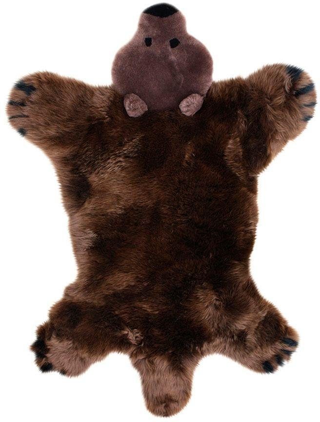 Der Teppich ist hochwertig, kuschelig und weich. Farbe (braun) wie abgebildet. Unten mit Leder versehen. Ein schönes Highlight für Bärenfans.