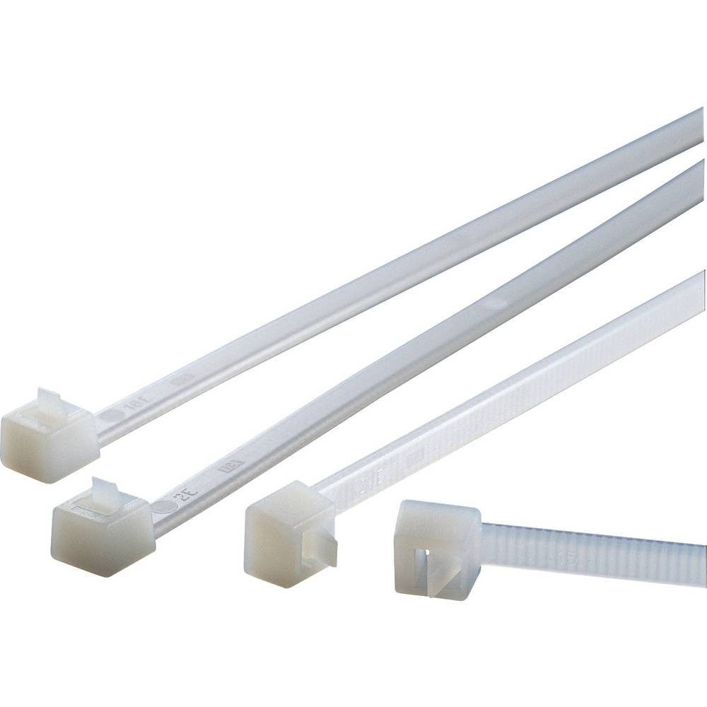 Kabelbinder kann geöffnet und wiederverwendet werden. In schwarz und natur erhältlich. Durch verlängertes Zungendesign leicht wieder zu öffnen. Innverzahnter Kabelbinder. In verschiedenen Довжинаn erhältlich Diese lösbaren und wiederverwendbaren Kabelbinder kommen in Bereichen zum Einsatz, wo häufig Veränderungen am Bündel vorgenommen werden müssen. Dazu gehören unter anderem eine nur vorübergehende Installation zu Testzwecken oder das nachträgliche Hinzufügen oder Entfernen von Elementen. Am häufigsten werden diese Kabelbinder im Bühnenbau, zur Kabelführung bei Outdoor-Events oder zur Prototypenarbeit verwendet. Zum Öffnen des Kabelbinders wird die verlängerte Zunge einfach mit einem Finger nach unten gedrückt.