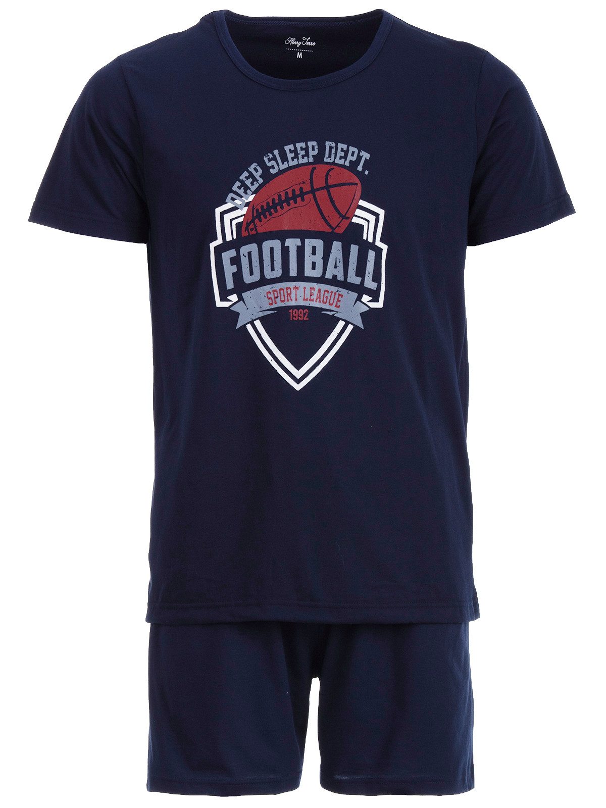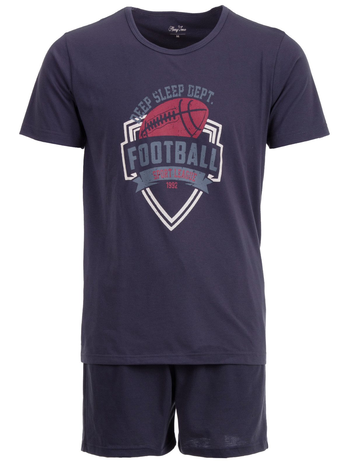 Der Herrenschlafanzug ist angenehm auf der Haut zu tragen. Das Shirt hat einen modernen Look durch den Print und einen Rundhalsausschnitt. Die kurze Schlafanzughose hat einen Dehnbund. Angenehmer Tragekomfort gerade im Frühjahr & Sommer.