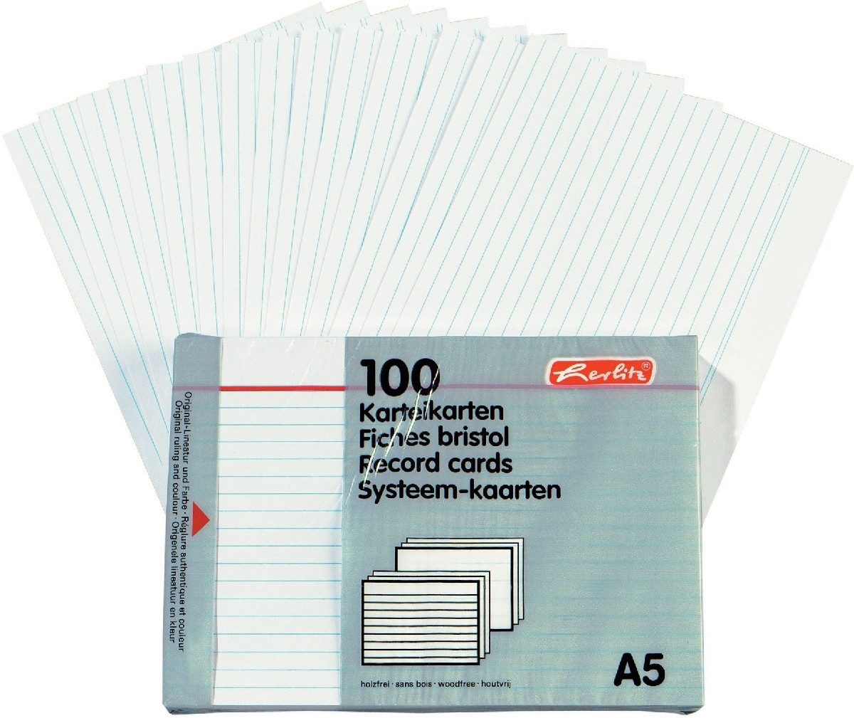 Herlitz Karteikarten Karteikarten A5 liniert weiß VE=100 Stück (4 Stück)