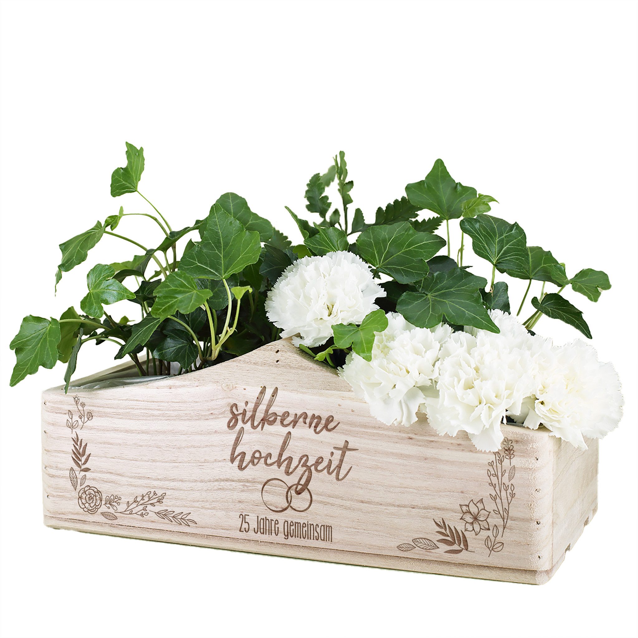Feiern Sie besondere Momente mit unserem liebevoll gestalteten, füllbaren Geschenkkorb aus Holz. Ideal für Jubiläen wie die Goldene Hochzeit (50 Jahre), Silberne Hochzeit (25 Jahre) oder einfach, um 50 Jahre Gemeinsamkeit oder 25 Jahre Gemeinsamkeit zu würdigen.