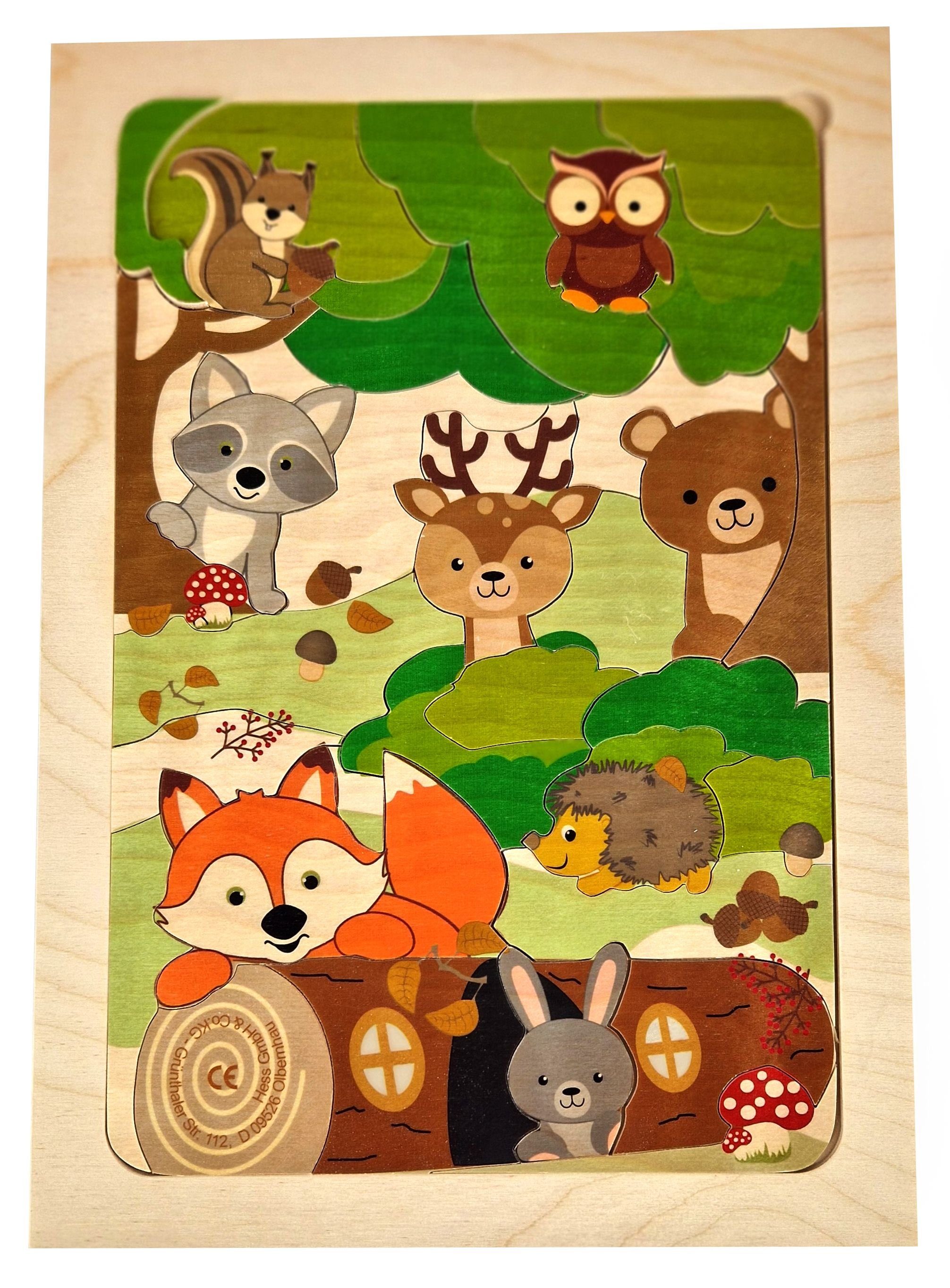 Puzzle Fuchs bunt Schon für die Kleinsten ein bunt bedrucktes einfaches Puzzle mit Teilen aus Birkenleimholz schult die Feinmotorik und ist aus nachhaltigen Rohstoffen BxHxT 21x29,5x0,7cm NEU |
