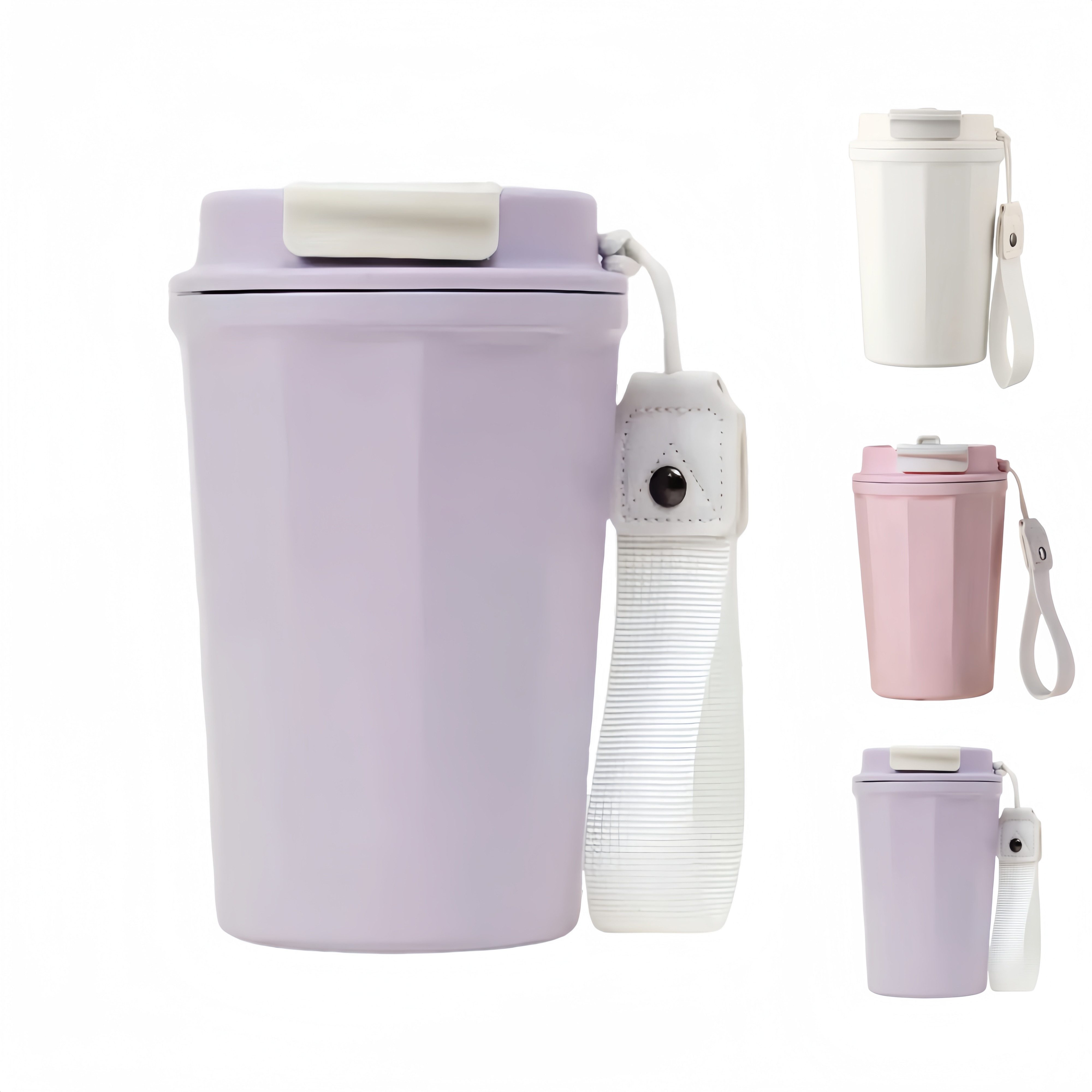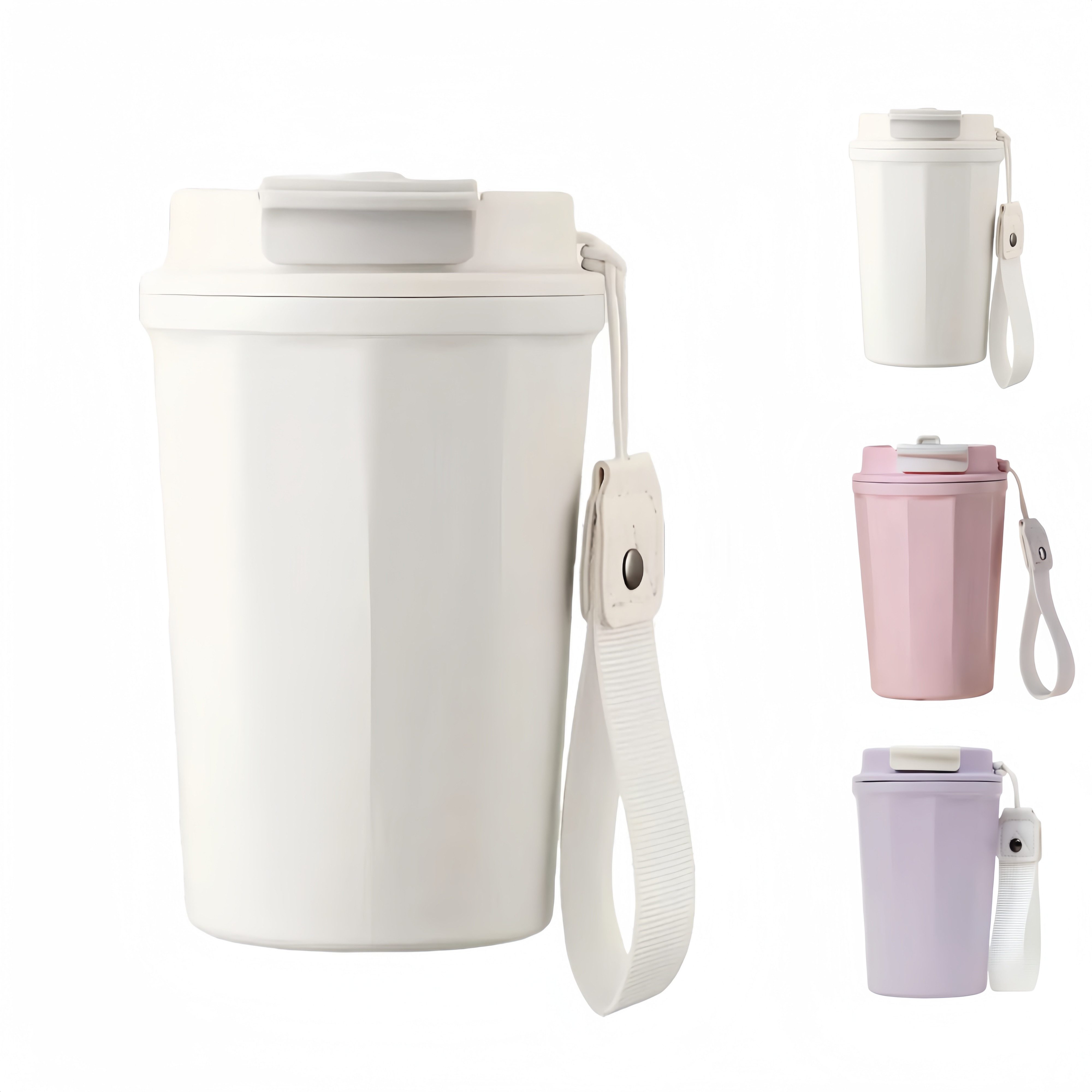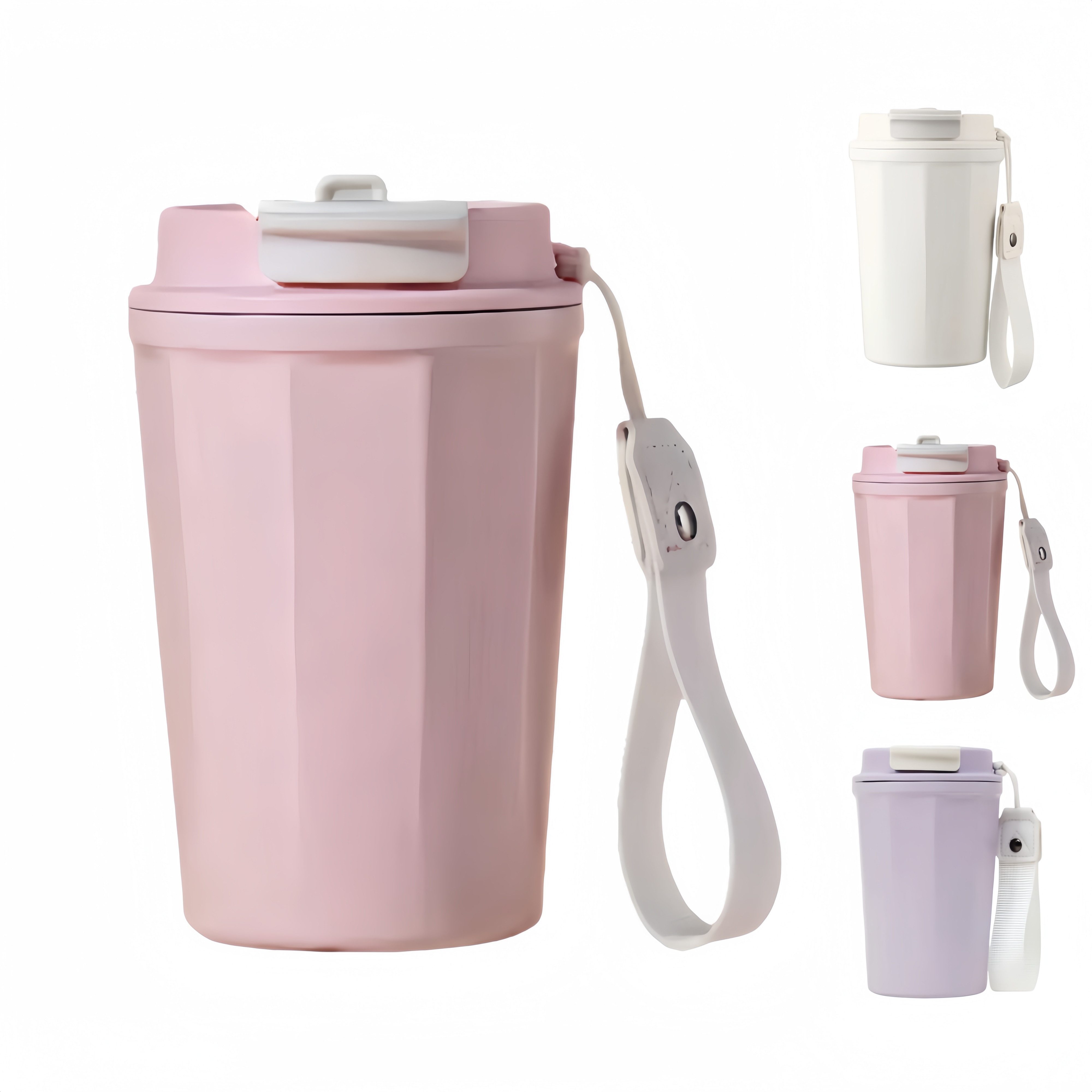 Ausgestattet mit einem rutschfesten Trageriemen und einem gestreiften Becherkörper, fühlt er sich bequem an und kann nicht so leicht abrutschen. Der Boden des Bechers ist verschleißfest und rutschfest, und der Deckel ist zur einfachen Reinigung abnehmbar.