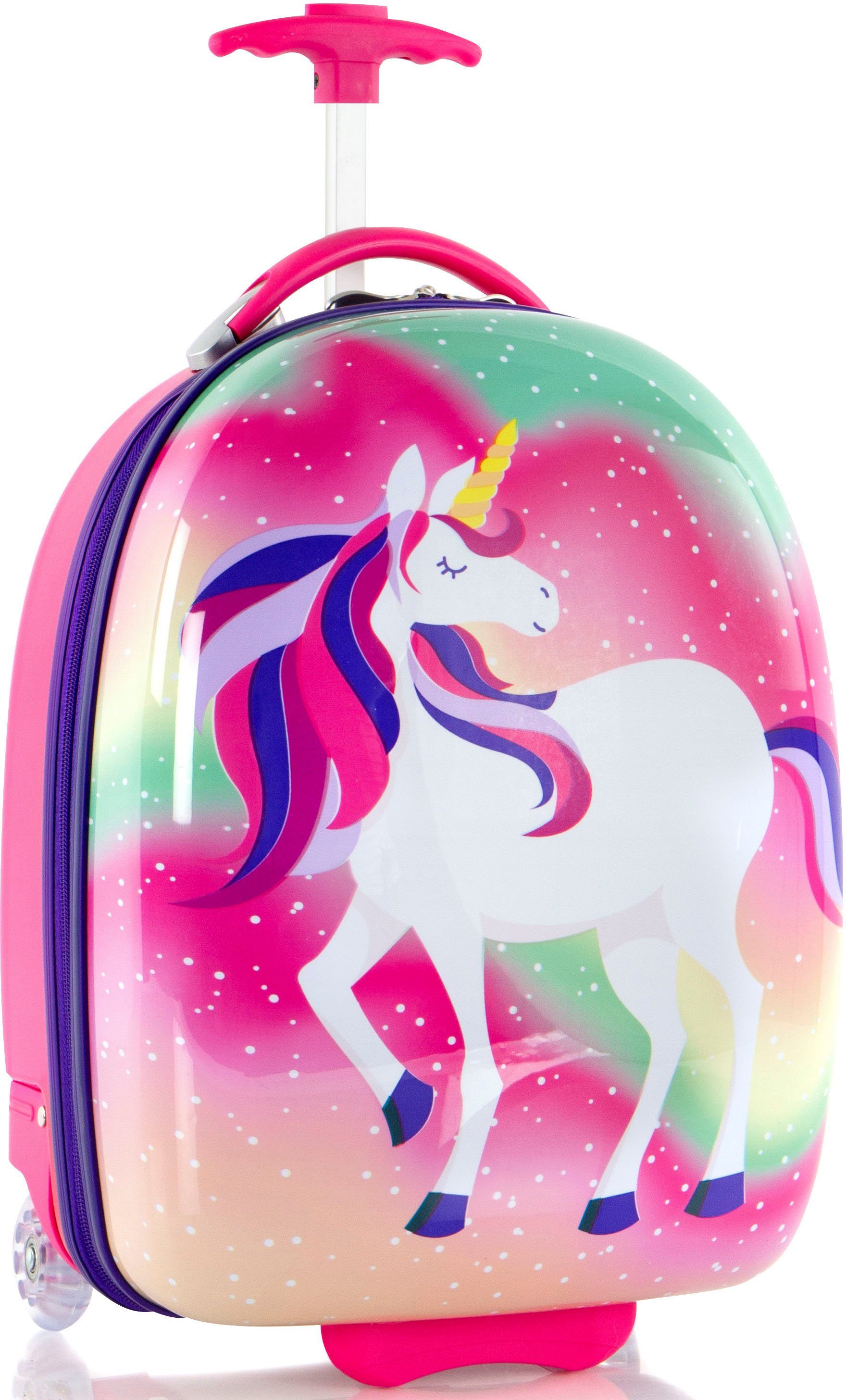Das stylische rosafarbene Heys Unicorn rund geformte Handgepäck begeistert Kinder mit seinem magischen Einhorn-Charakter, der speziell auf die Hartschalenoberfläche gedruckt wurde. Kinder können dieses farbenfrohe und leichte Reisegepäck überallhin mitnehmen, vollgepackt mit all ihren besonderen Utensilien für die Schule, den Sport, einen Ausflug oder als perfektes Gepäck für den nächsten Familienurlaub. Hergestellt aus schlagfestem und dennoch leichtem Polycarbonat-Verbundstoff, mit einer schützenden Klarlackbeschichtung für ein schönes Hochglanz-Finish und lebendige Farben. Das Äußere verfügt über ein einzigartiges "Reverse Curve"-Trolley-Griffsystem, das den Griff nach innen und näher zum Kind krümmt, wodurch es für ein Kind bequemer wird, das Gepäck zu halten und zu navigieren. Es hat auch leise und leicht laufende klare Inline-Skate-Rollen mit Metalllagern. Diese „hervorstehenden“ Räder wurden speziell entwickelt, um hervorzustehen – sie halten den Koffer angehoben, so dass er leicht rollt, selbst in sehr geringer Höhe über dem Boden. Der farbenfrohe Innenraum ist vollständig gefüttert und verfügt über doppelt ineinandergreifende Riemen zum Sichern von Gegenständen und eine Trennwand mit Reißverschluss für die interne Organisation, sodass Kinder genau wie die Erwachsenen packen können.