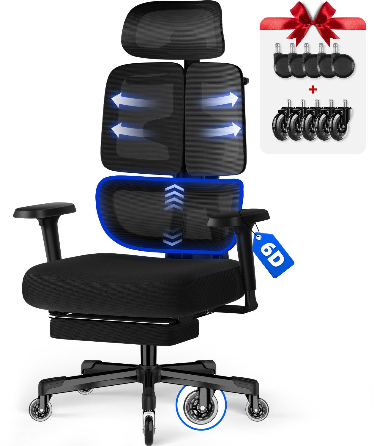 5 cm nach oben und unten verstellbar Adaptives Design der Rückenlehne Dynamische, selbsteinstellende 20°-Lordosenstütze