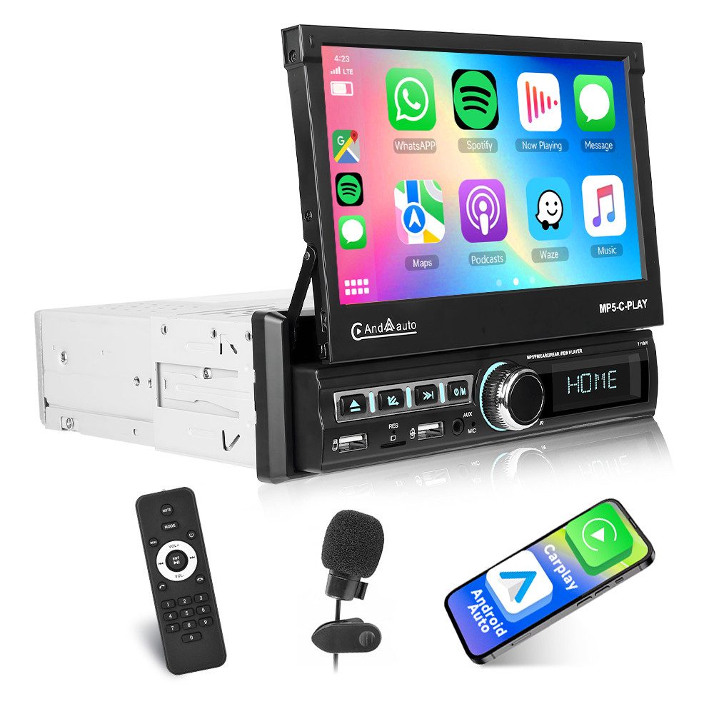 ● Einstellbarer Bildschirmwinkel: Erleben Sie ultimativen Betrachtungskomfort mit dem einstellbaren Bildschirmwinkel unseres Auto-Infotainmentsystems. Passen Sie die Bildschirmposition Ihren Bedürfnissen an, reduzieren Sie Blendeffekte und verbessern Sie die Sicht. Diese Flexibilität sorgt dafür, dass Sie die perfekte Sicht haben, egal ob Sie navigieren, Videos ansehen oder auf Apps zugreifen.