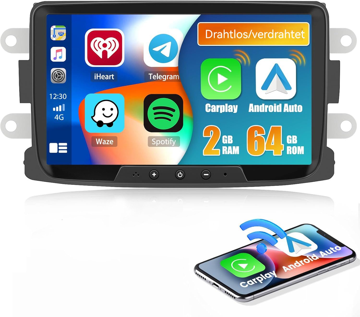 ●Wireless Carplay und Wireless Auto: Verwenden Sie Ihr iPhone oder Android-Telefon drahtlos mit dem Gerät und steuern Sie die Apps Ihres Telefons. Sie können Anrufe tätigen, Nachrichten senden, Musik abspielen, navigieren und vieles mehr - einfach per Sprache oder Berührung.