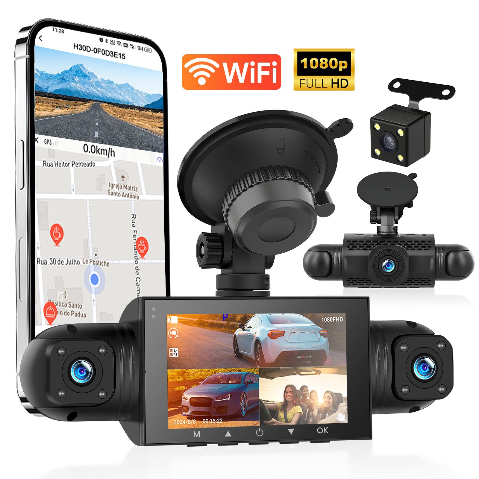 6) Besondere Merkmale: Vier Kameras, Loop-Aufzeichnung, WLAN, Schwerkraftsensor, Bewegungserkennung, Nachtsicht, Rückfahrhilfe, Belichtungskorrektur.