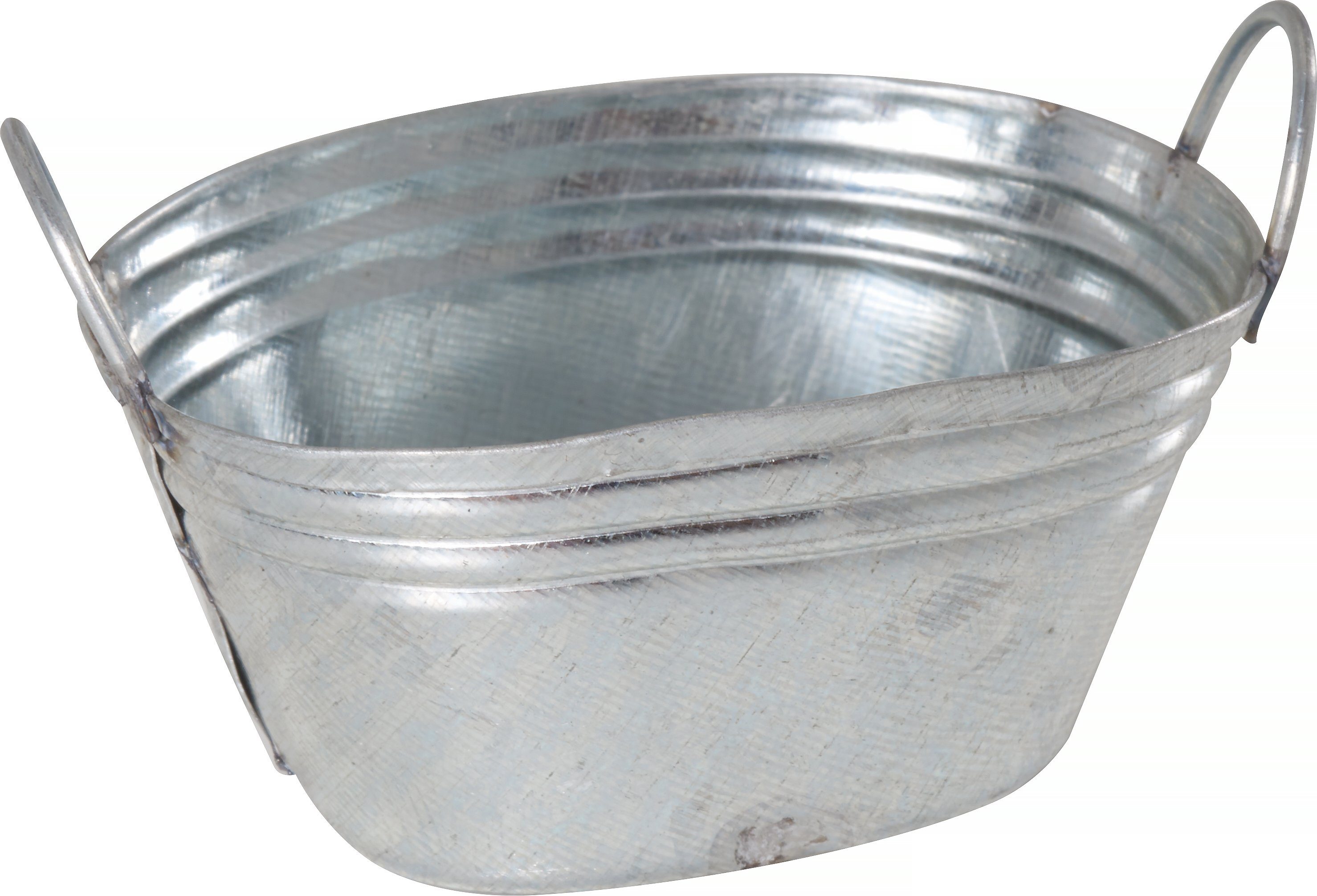 Miniatur Metall-Wanne, ca. 5,1 x 3,9 x 3,2 cm groß als Accessoire für Miniaturlandschaften, Wichtelwelten und Puppenhäuser. Lässt sich nach Belieben mit Stroh, Gras oder Deko-Sand befüllen und in dekorierten Szenen platzieren.