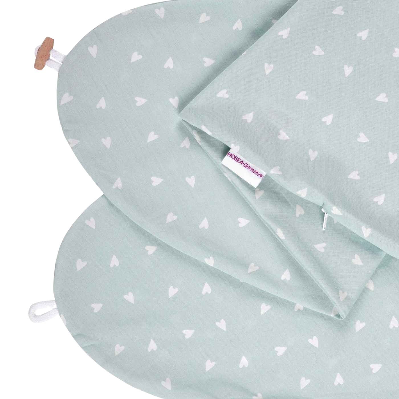 Wie oft hast du schon darüber nachgedacht dein Stillkissen auszutauschen? Wir bei HOBEA möchten, dass du an deinen Erinnerungen festhalten kannst, daher kannst du dein Stillkissen mit unseren Ersatzbezügen noch viele weitere Jahre nutzen, ohne dass es stark gebraucht aussieht. Vielleicht magst du aber auch einfach die Abwechslung und hast Lust auf ein anderes Design zu wechseln, weil du dich satt gesehen hast? Auch das ist mit einem Ersatzbezug kein Problem. Zudem wird ein Zweitbezug möglich, sodass du immer eine Reserve hast, falls sich der andere Bezug mal in der Waschmaschine befindet.