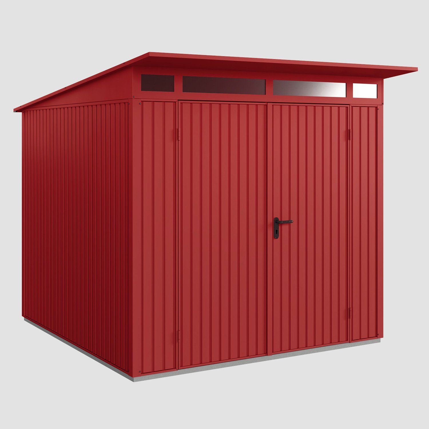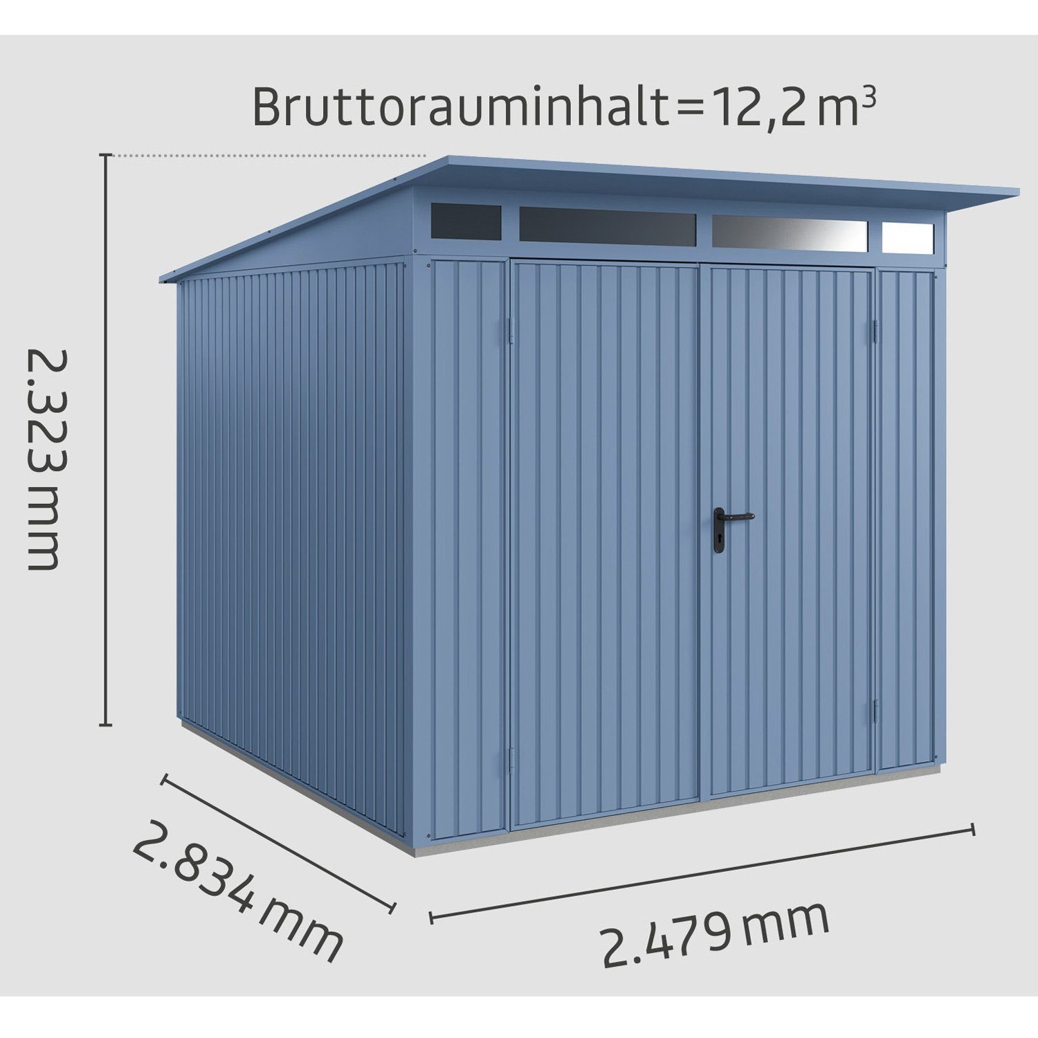 Eigenschaften | für ganzjährigen Gebrauch geeignet witterungs- und schimmelresistent besonders wartungsarm extrem haltbar formstabil nicht brennbar Material Wand: feuerverzinktes Stahlblech Material Bodenrahmen: Aluminium Türbänder passend zur Hausfarbe Türanschlag rechts und links möglich ohne scharfe Kanten |