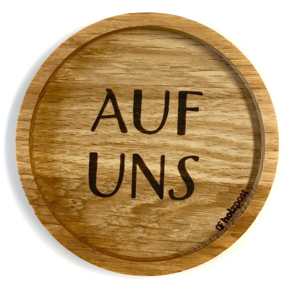 Lieferumfang | 1x Holzuntersetzer "AUF UNS" |